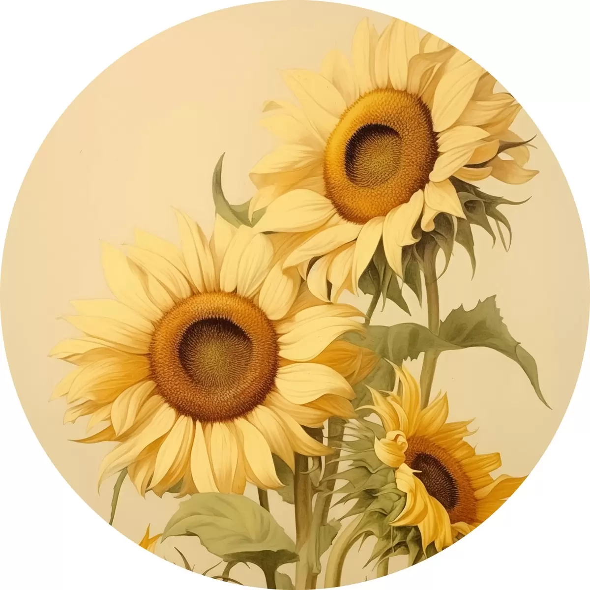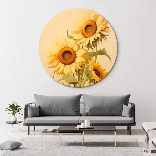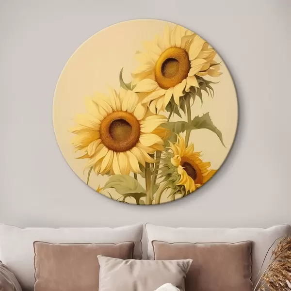 Ronde schilderijen Zonnebloemen in het zonlicht r42155