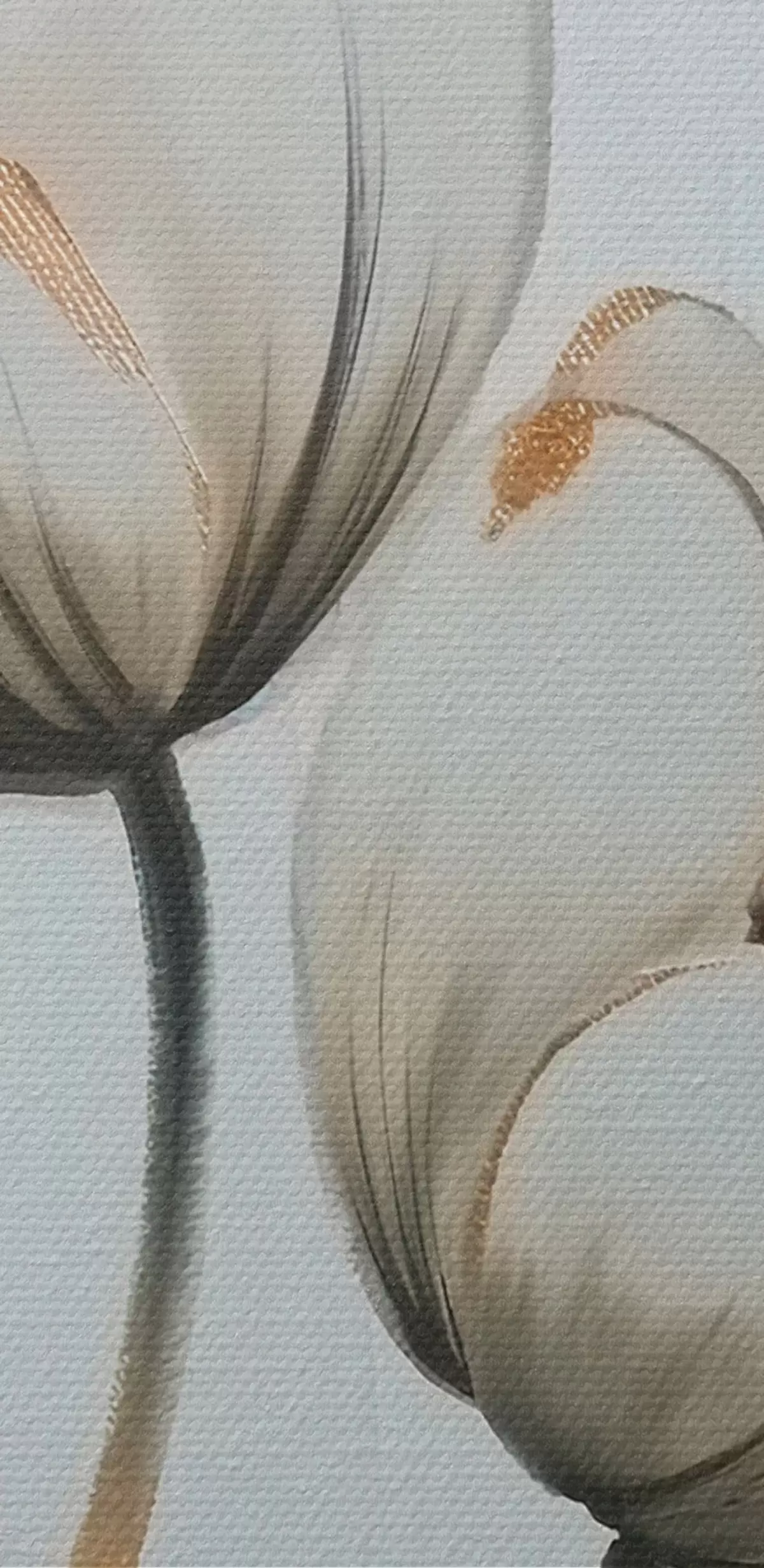 Het schilderij kan direct na ontvangst worden opgehangen. Het schilderij wordt opgespannen op een 2 cm breed houten spieraam.