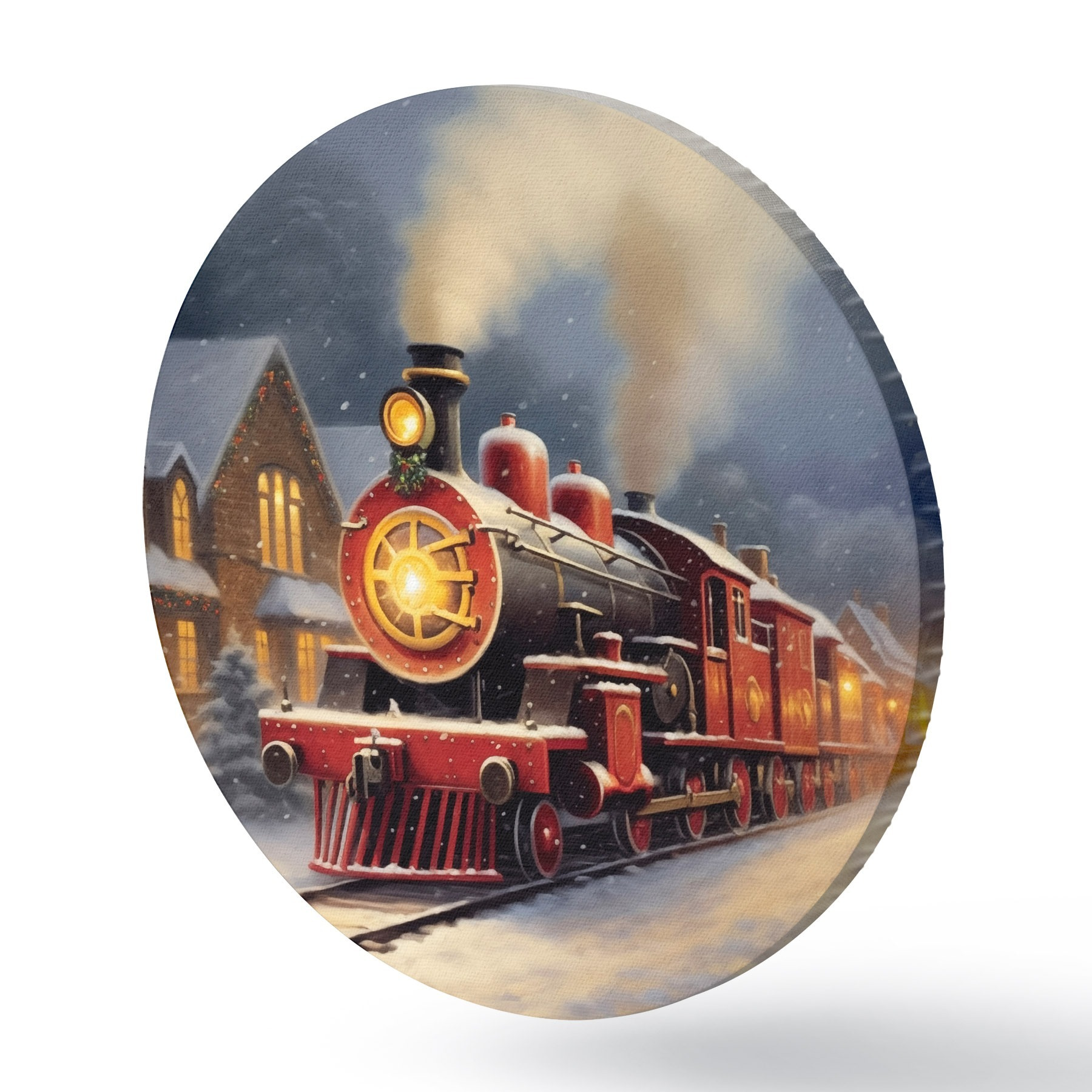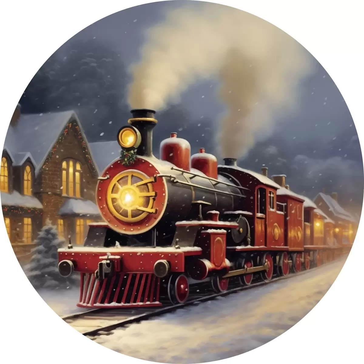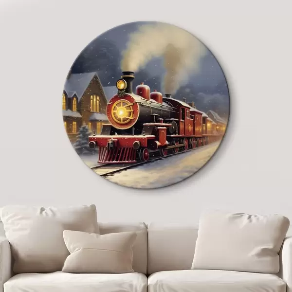 Ronde schilderijen Kersttrein in een winters sprookje r42168