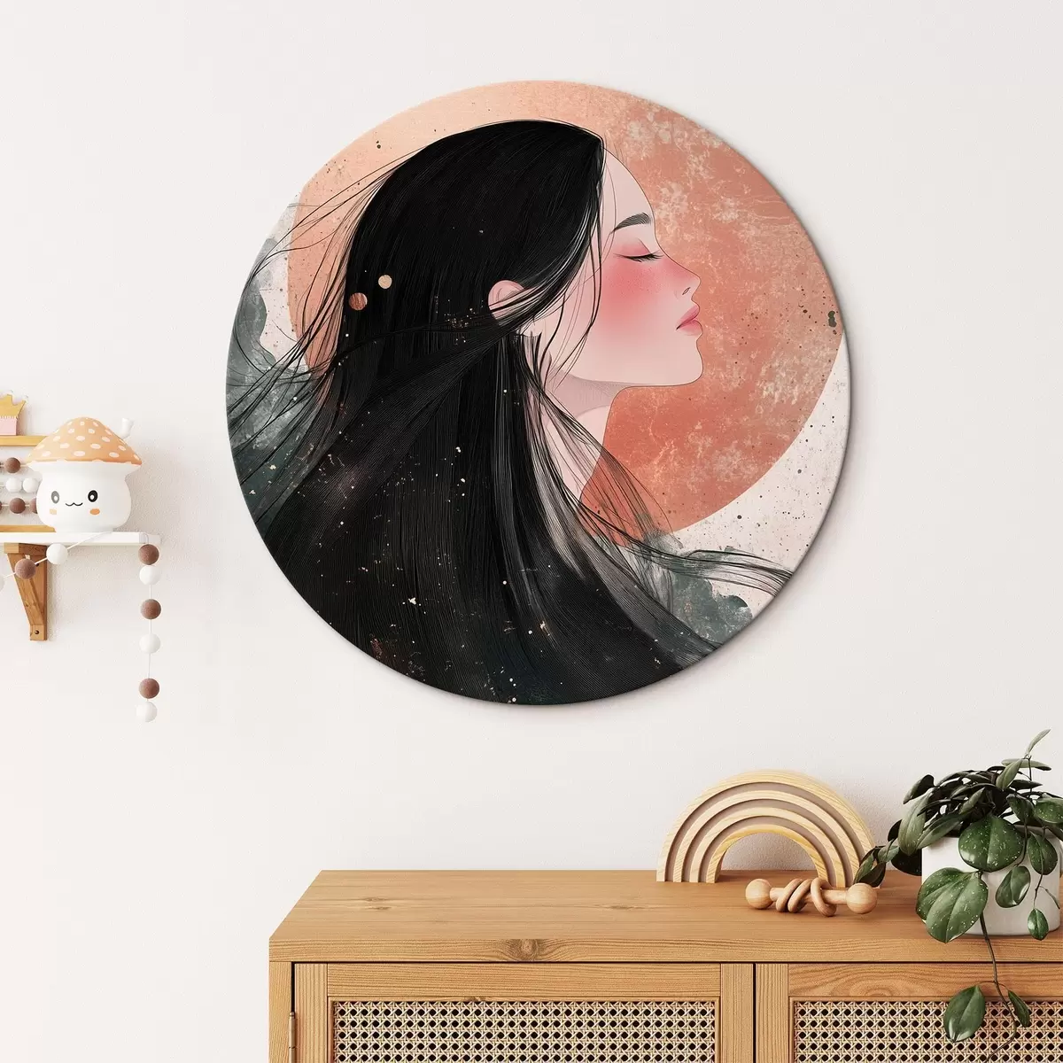 Ronde schilderijen Mooi meisje, oosterse stijl, zon, roze kleuren r42195