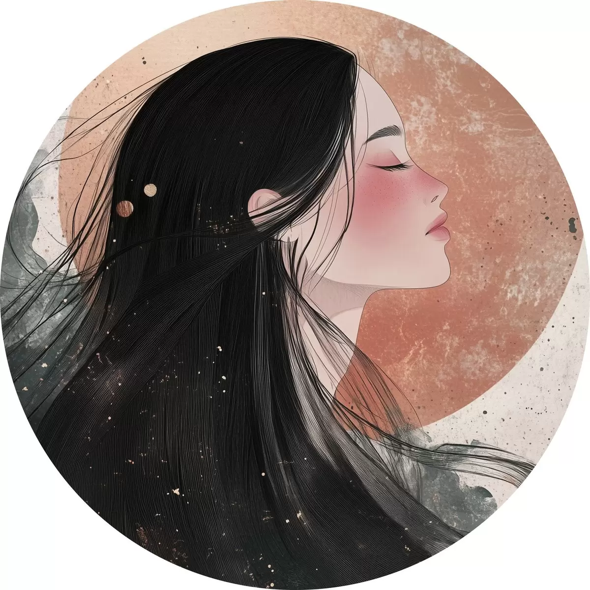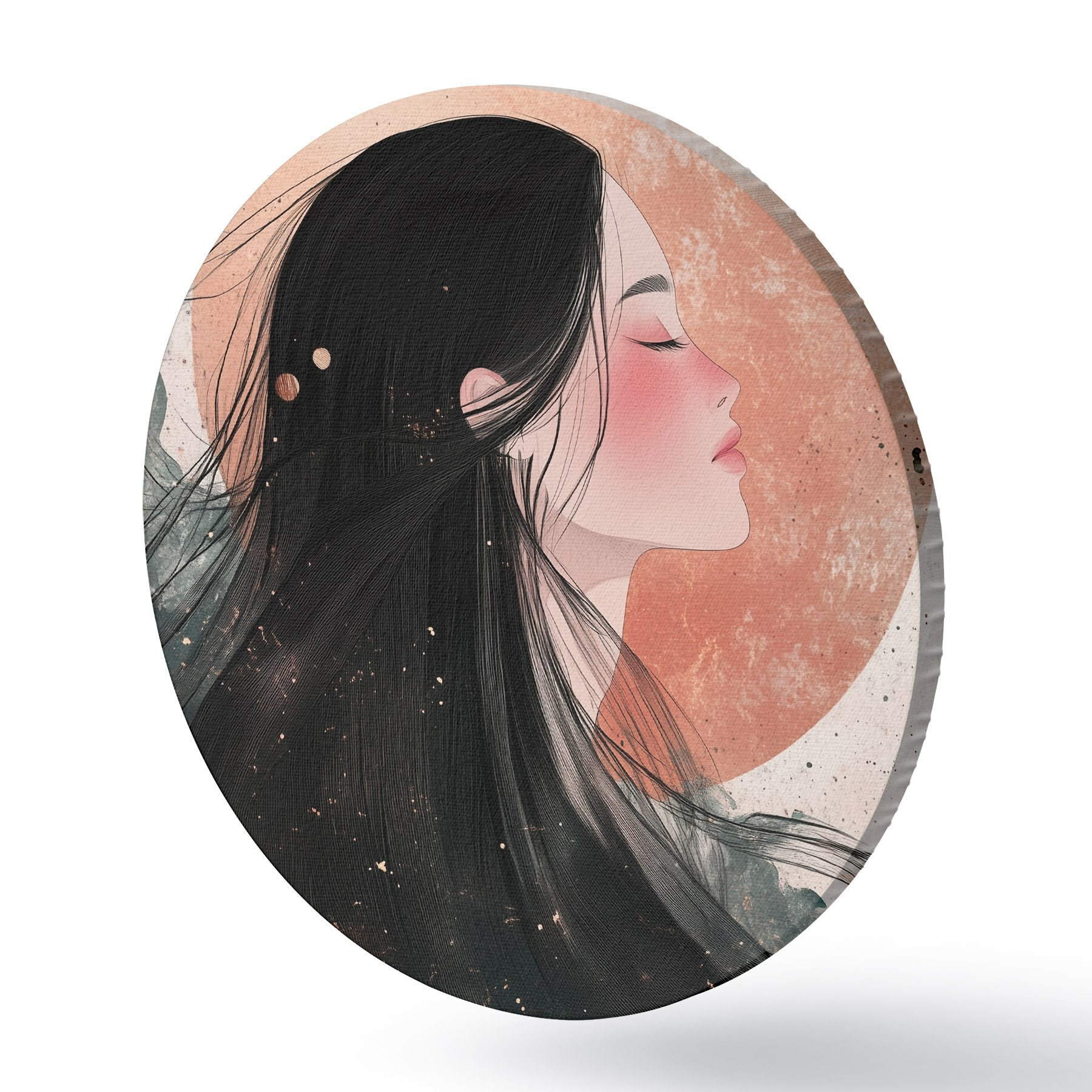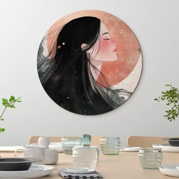 Ronde schilderijen Mooi meisje, oosterse stijl, zon, roze kleuren r42195