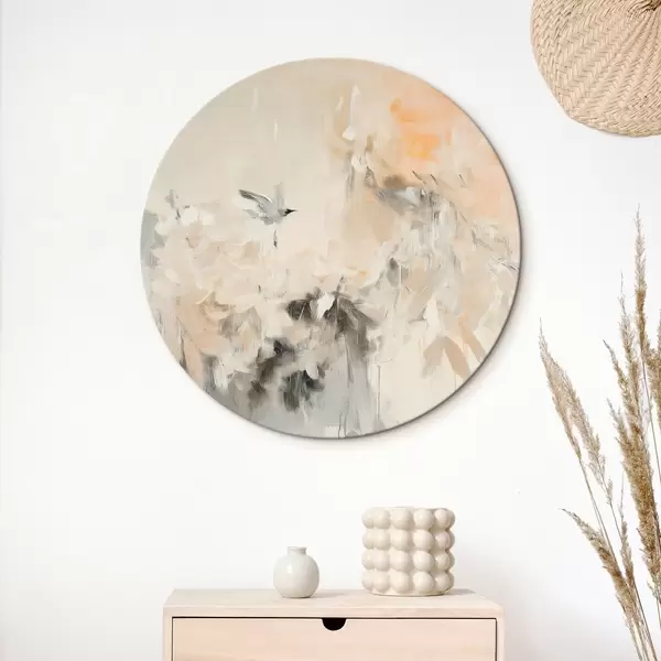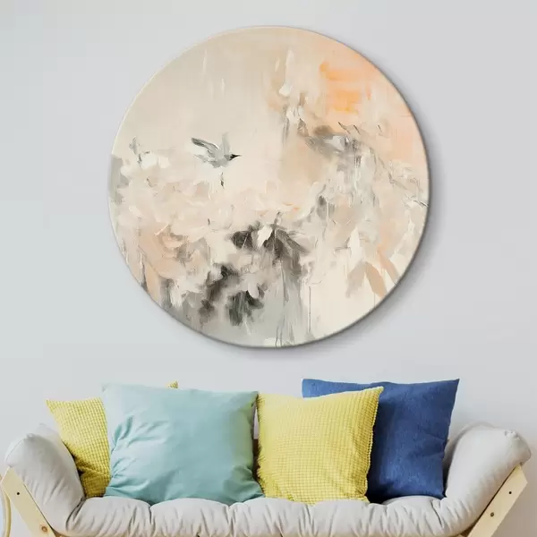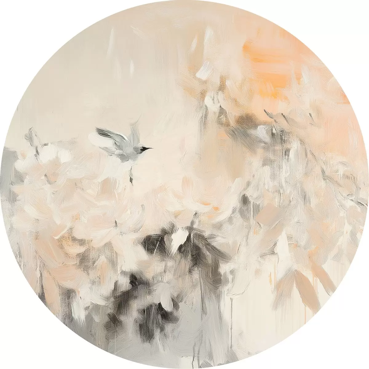 Ronde schilderijen Abstractie met vliegende vogels, acrylstijl, roze en beige kleuren r42205