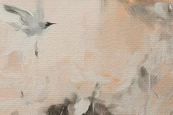 Afbeelding Abstractie met vliegende vogels, acrylstijl, roze en beige kleuren Nr r42205