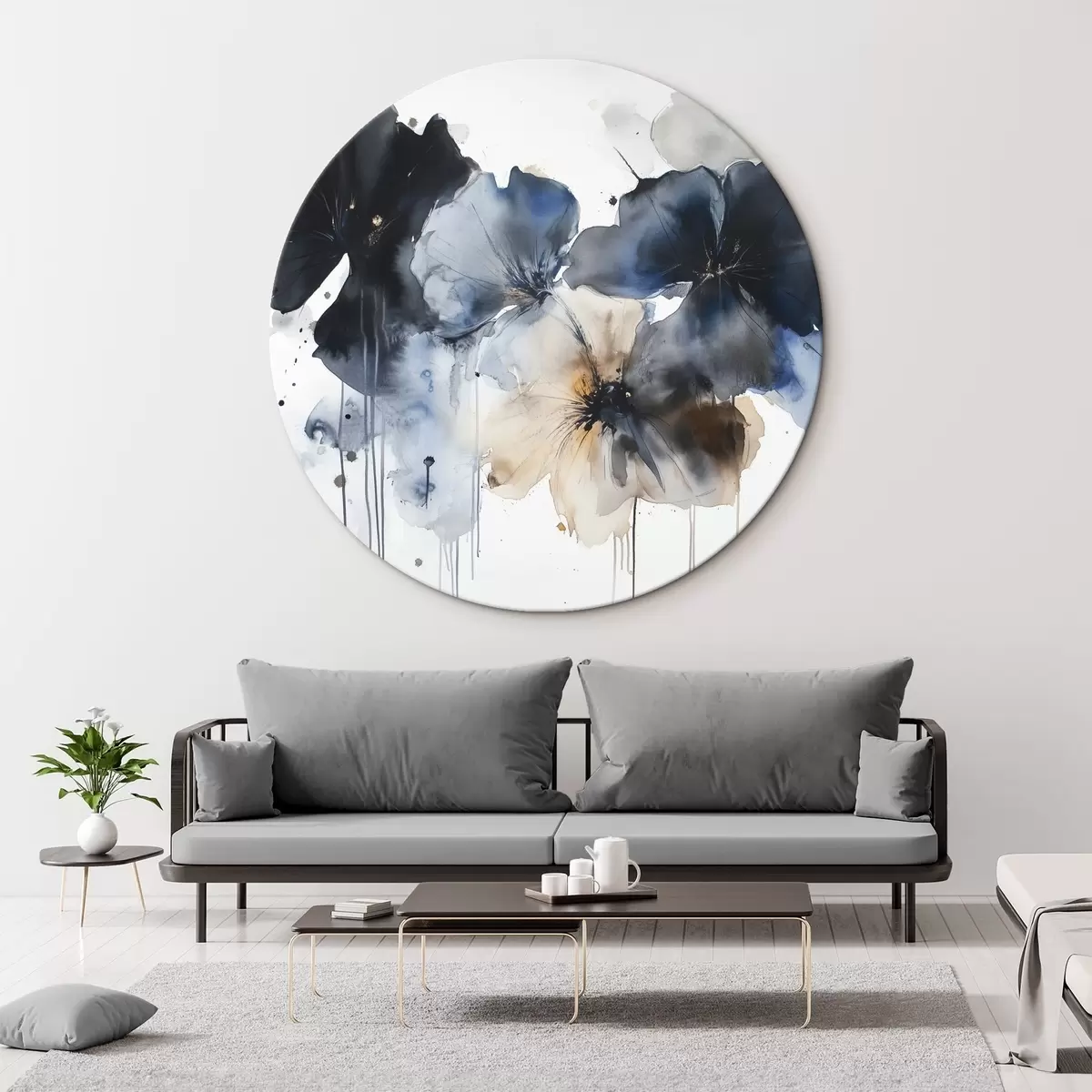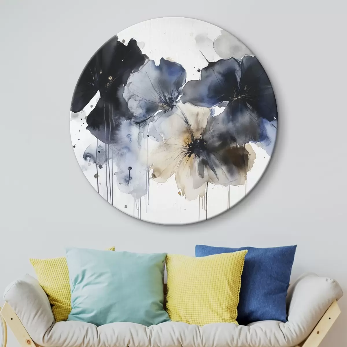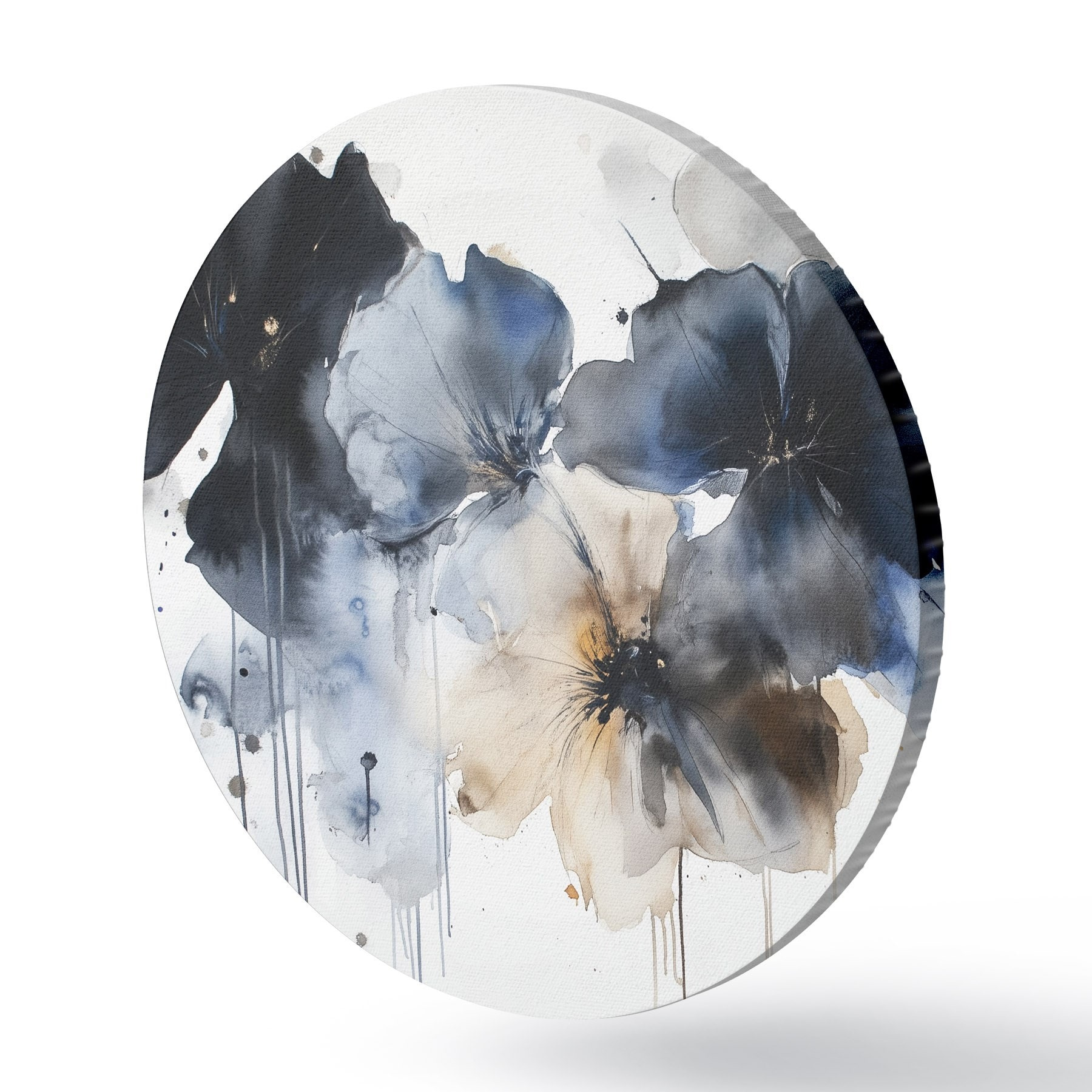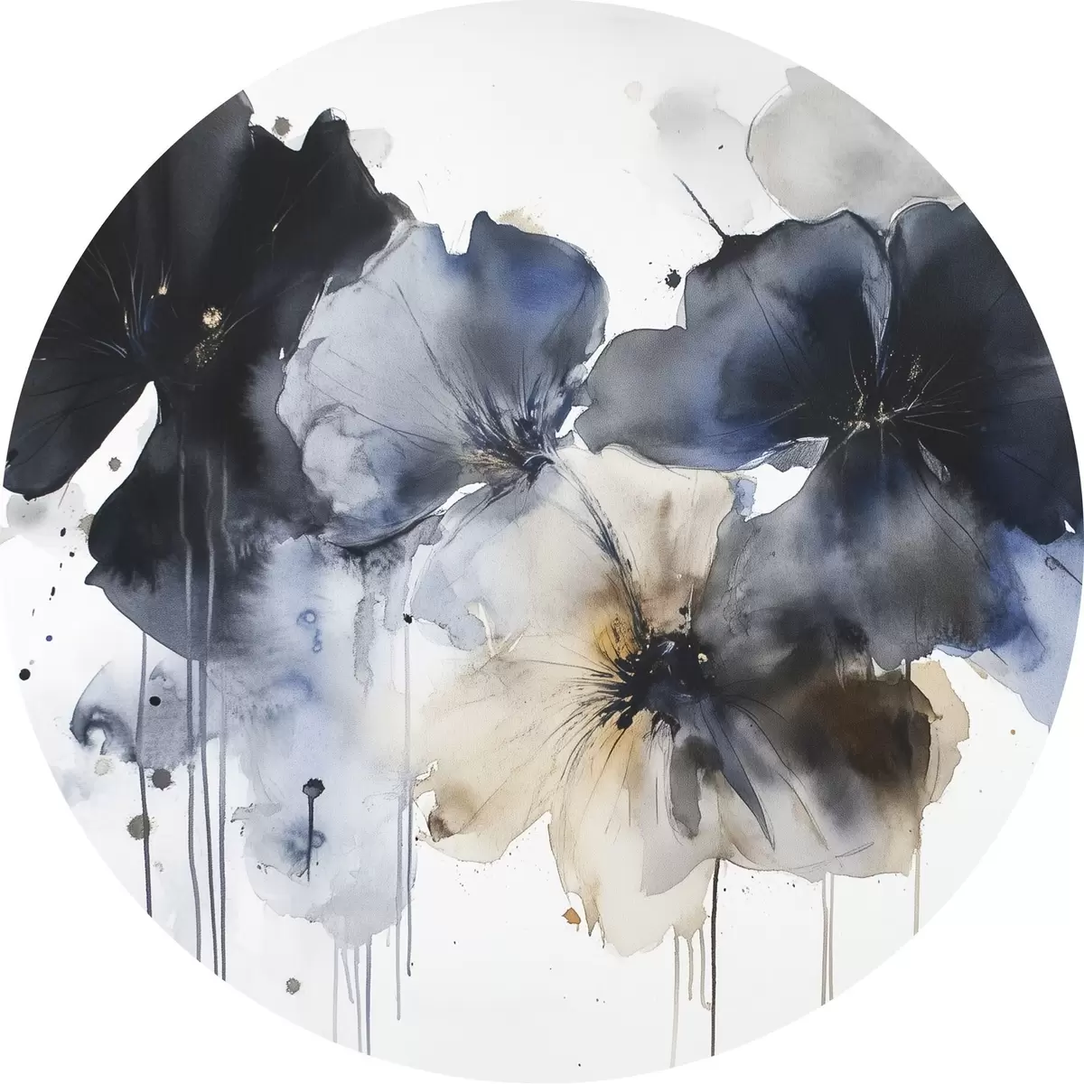 Ronde schilderijen Aquarel bloemen, vloeiende stijl, blauwe kleuren r42207