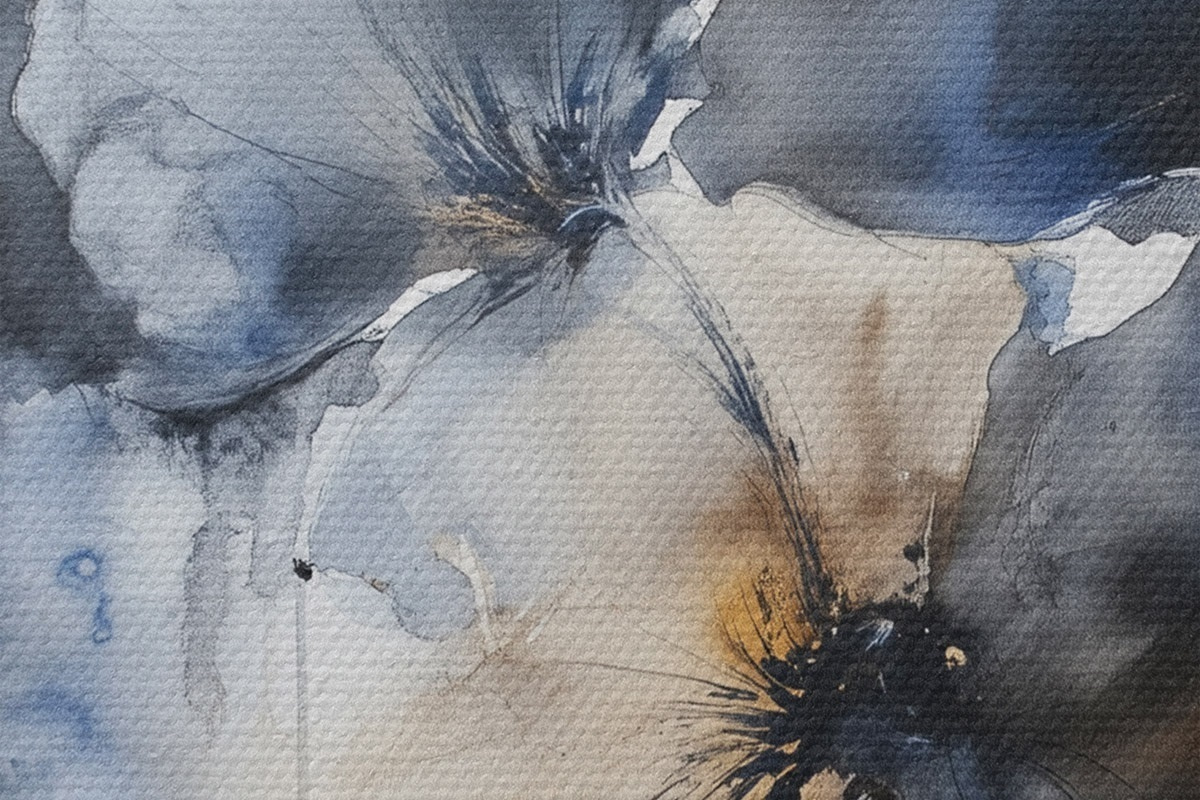 Afbeelding Aquarel bloemen, vloeiende stijl, blauwe kleuren Nr r42207