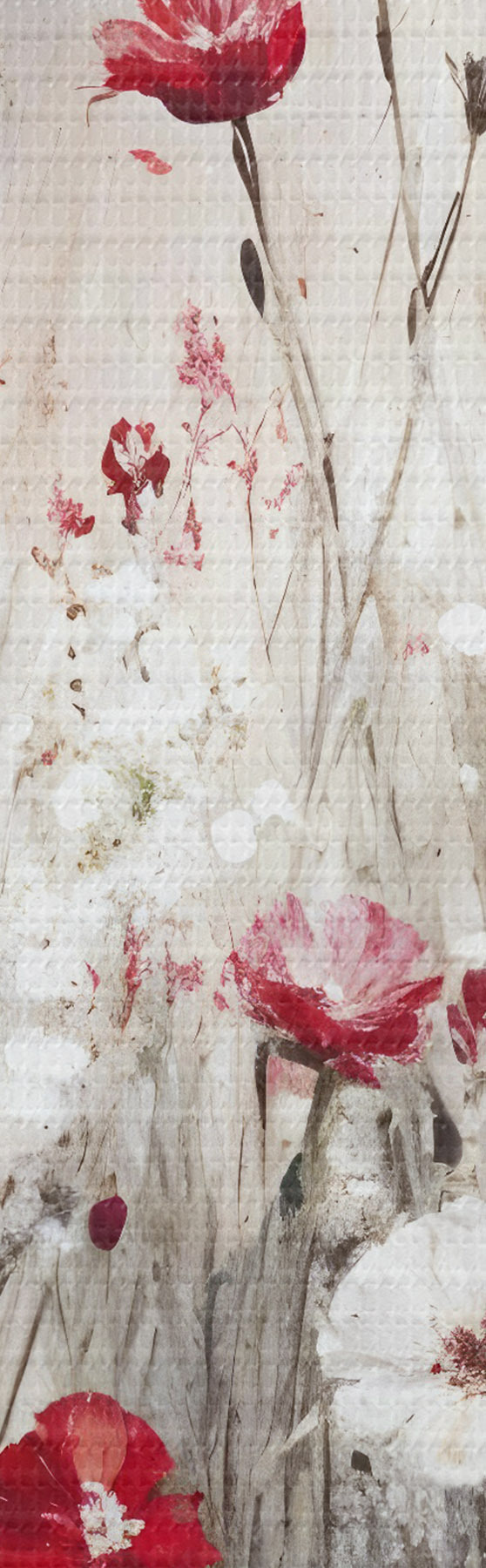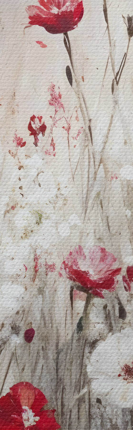 Afbeelding Abstracte imitatie van olieverfschilderij een veld van rode en witte klaprozen en madeliefjes bloemen tegen een grijze texturale achtergrond Nr r42213