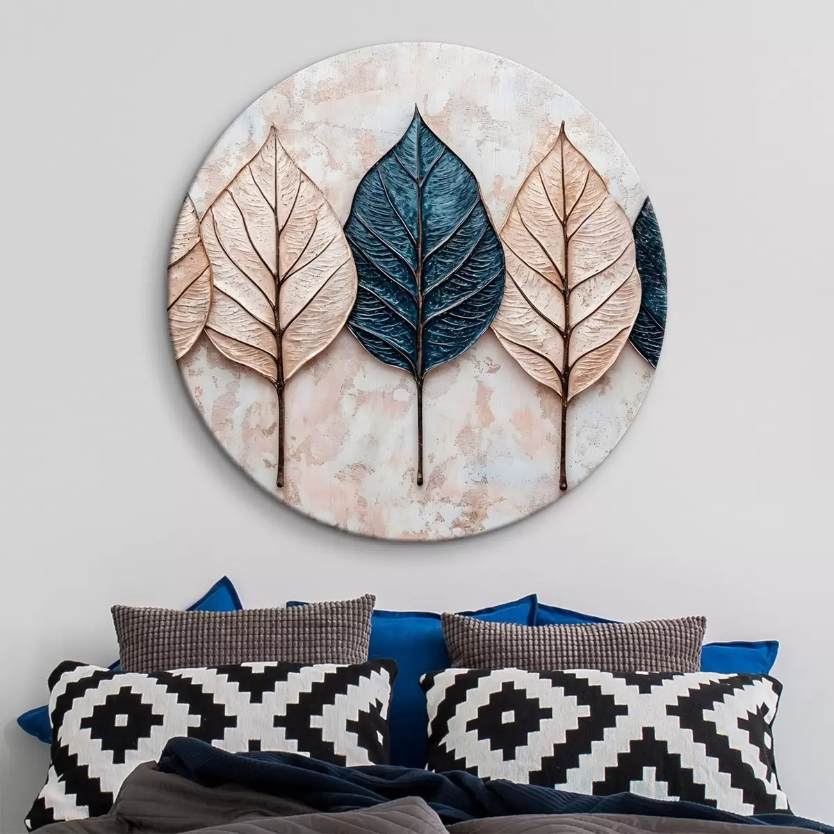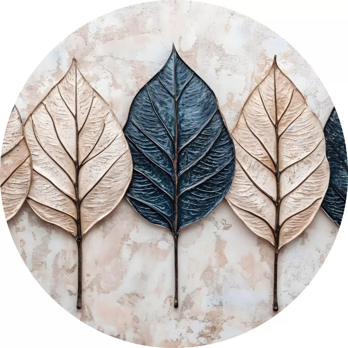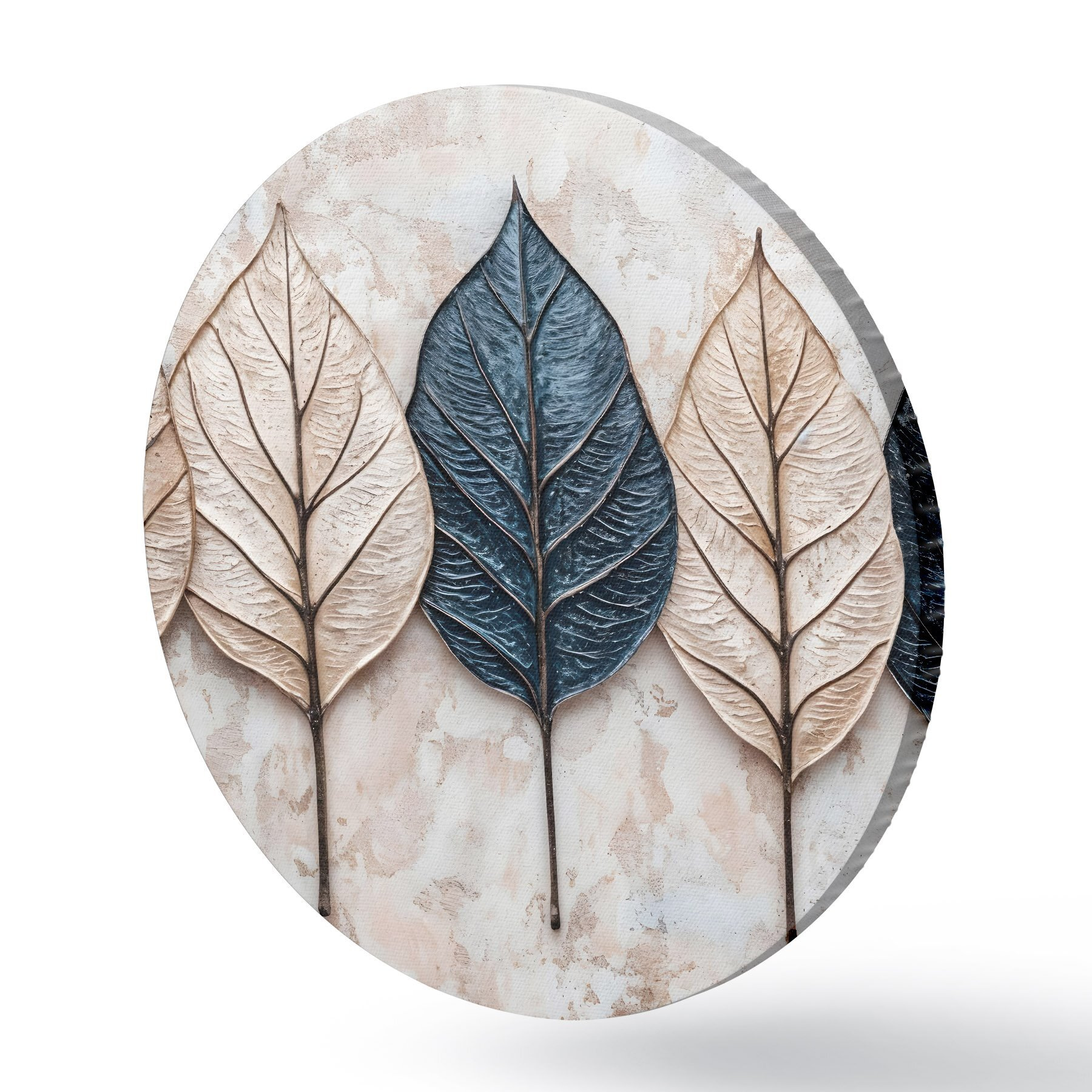 Ronde schilderijen Geassorteerde abstracte herfstbladeren in verschillende tinten bruin, beige en blauw, gerangschikt in een rij op een lichte achtergrond r42217