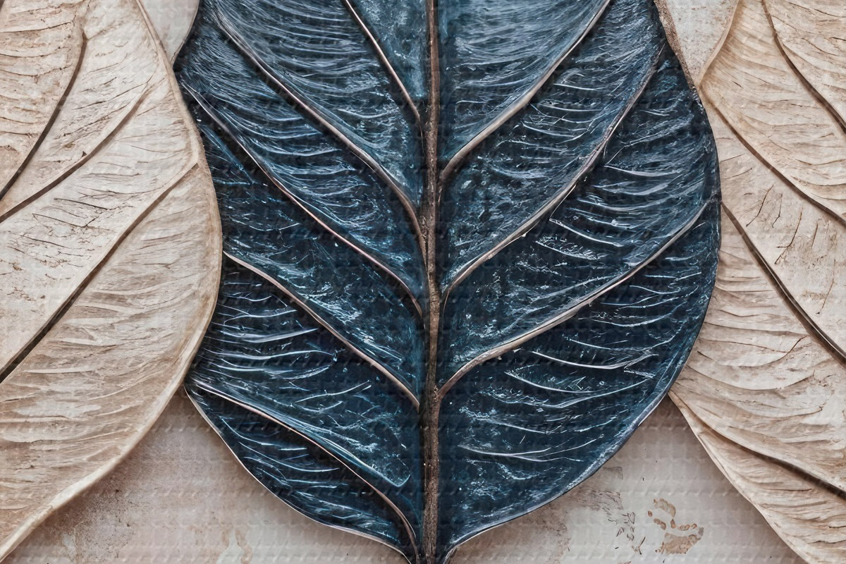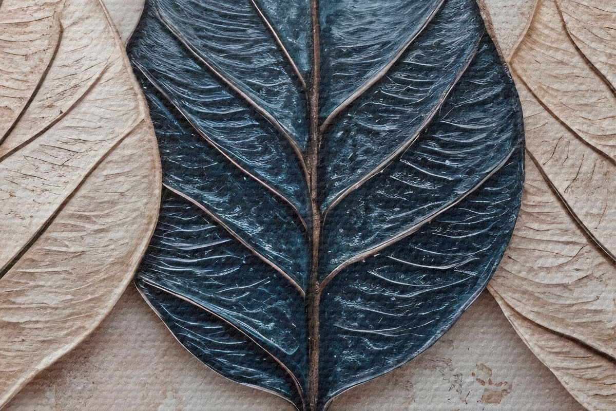 Afbeelding Geassorteerde abstracte herfstbladeren in verschillende tinten bruin, beige en blauw, gerangschikt in een rij op een lichte achtergrond Nr r42217