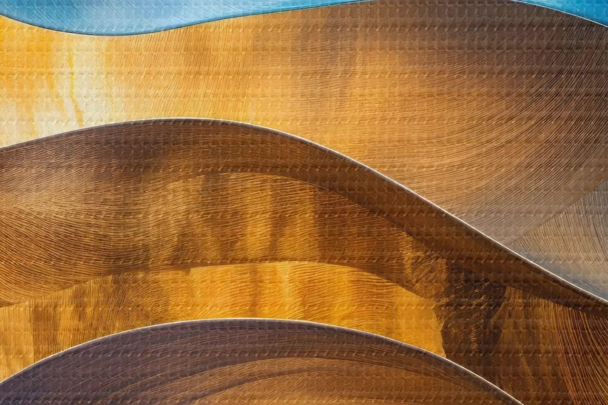 Afbeelding Abstracte moderne kunst golvende vormen in tinten blauw, oranje en bruin Nr r42224