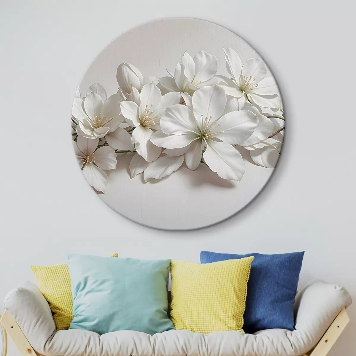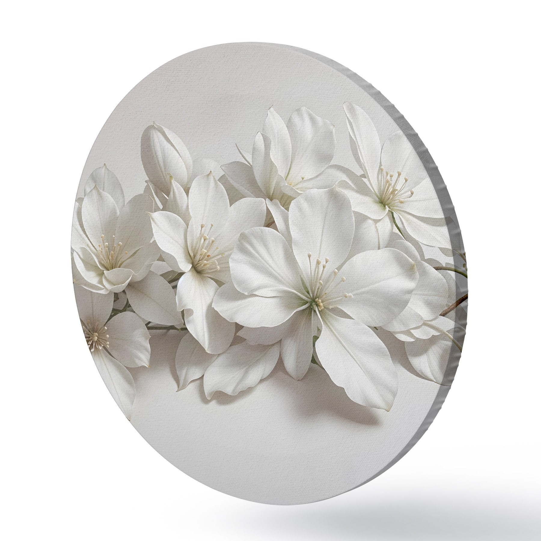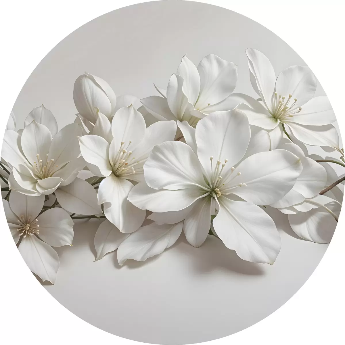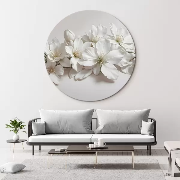Ronde schilderijen Witte delicate magnolia bloemen op een lichte achtergrond r42230