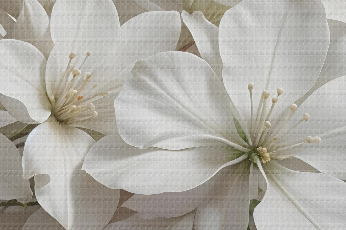 Afbeelding Witte delicate magnolia bloemen op een lichte achtergrond Nr r42230