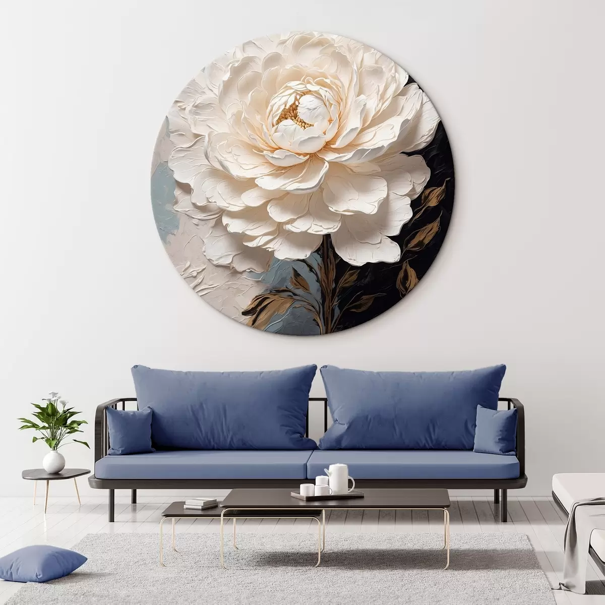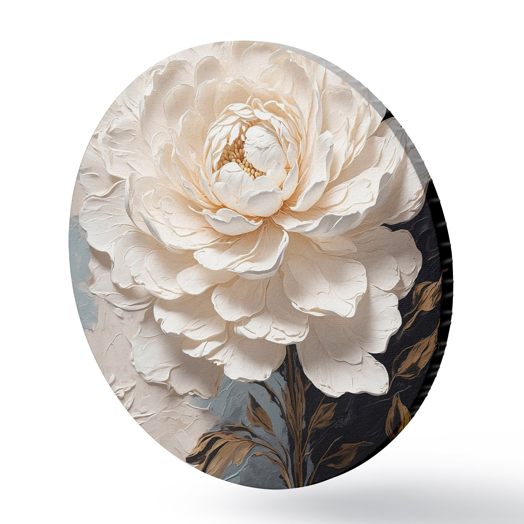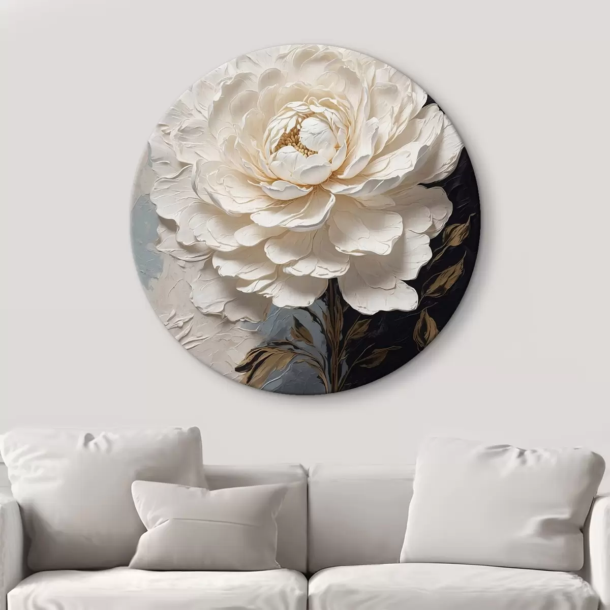 Ronde schilderijen Bloem op zwart-witte olieverf achtergrond r42249