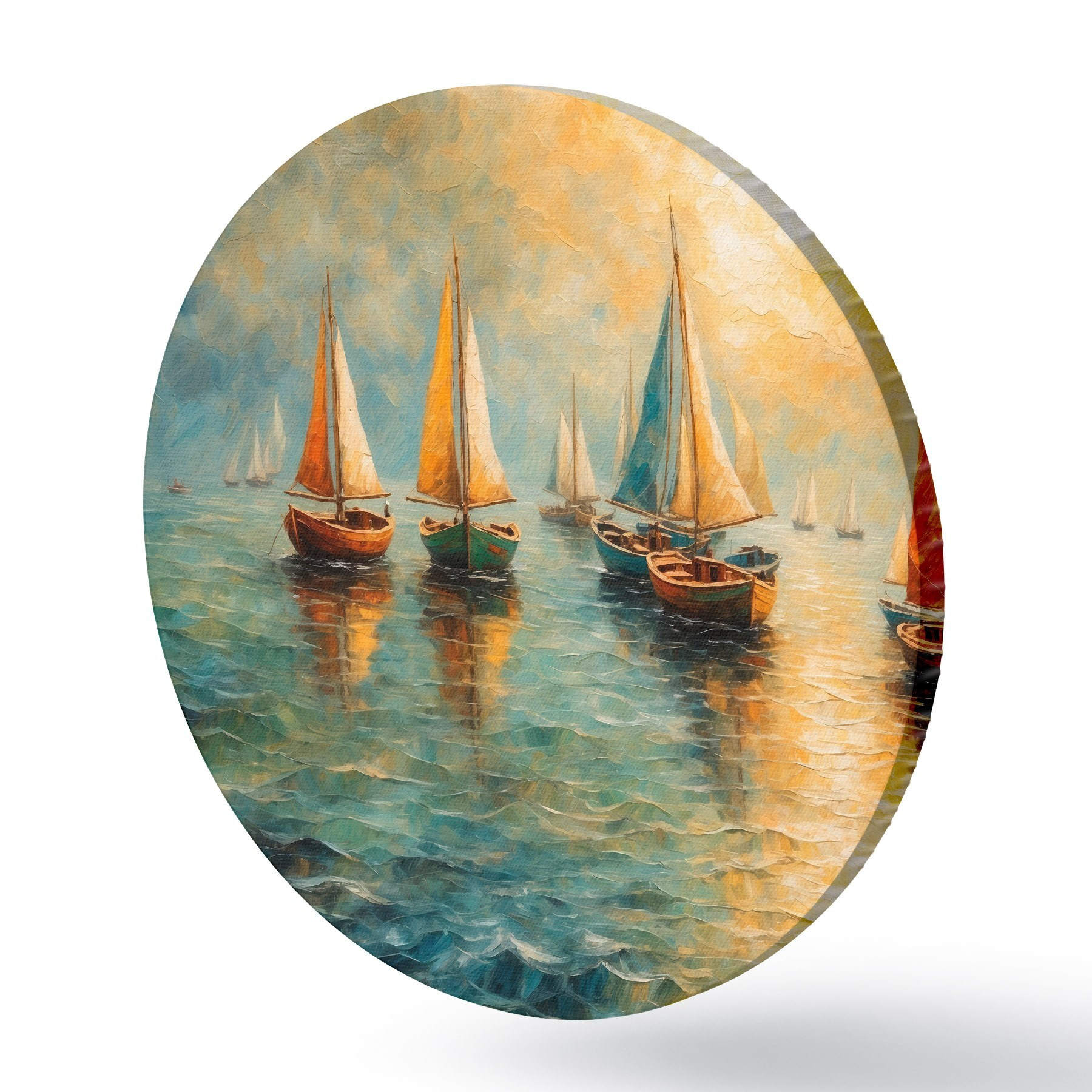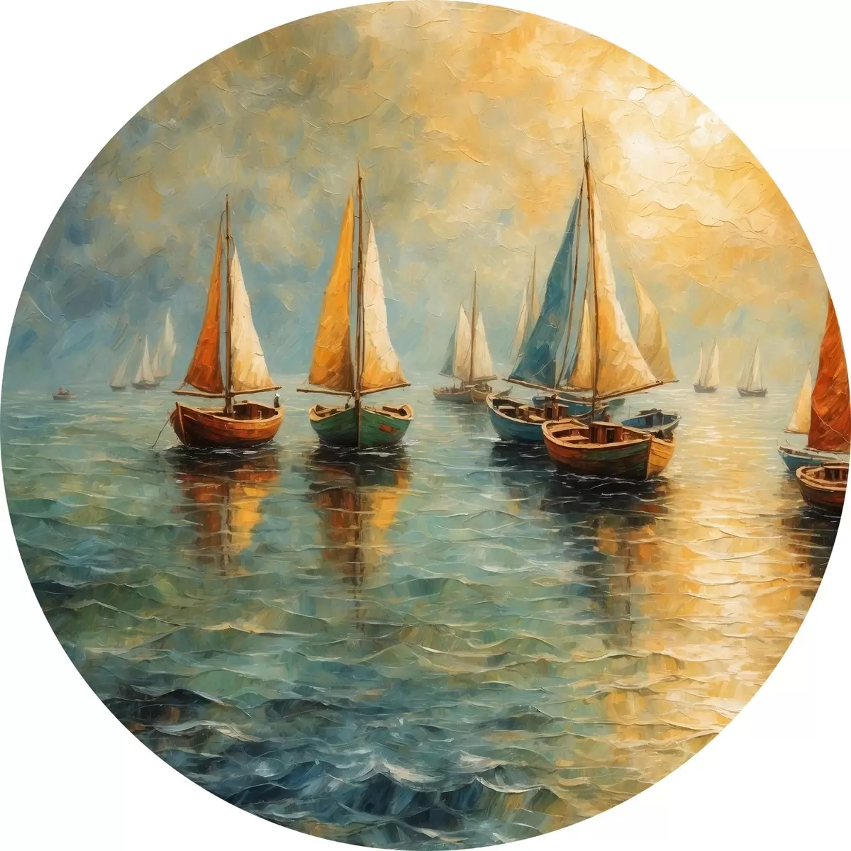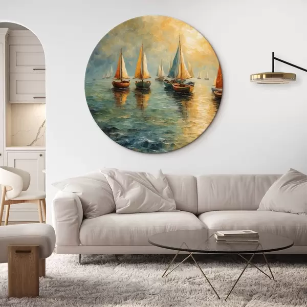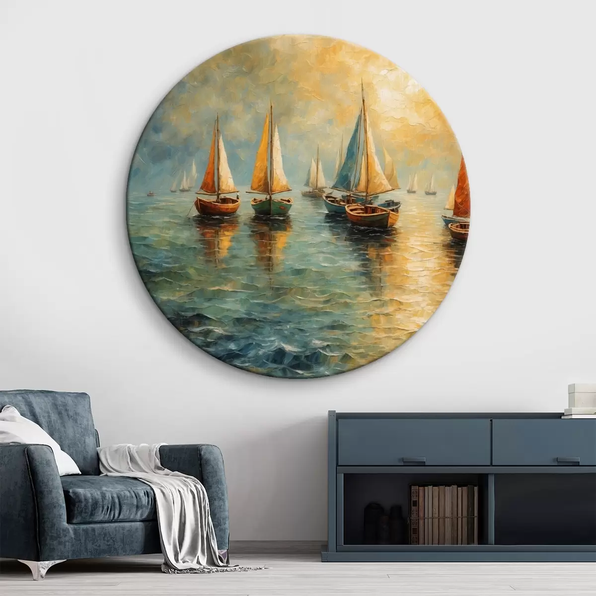 Ronde schilderijen Schepen zeilen de zonsondergang tegemoet r42251
