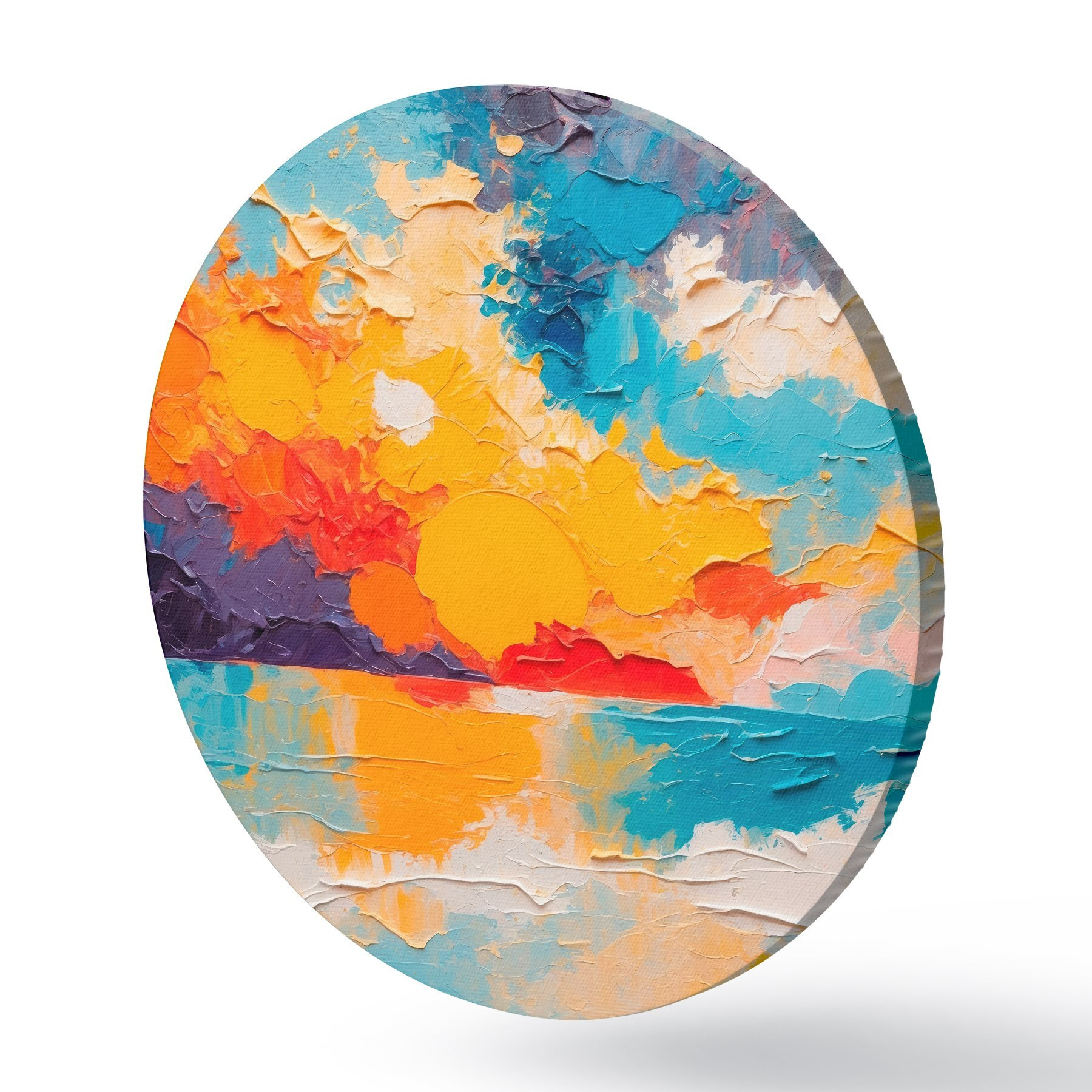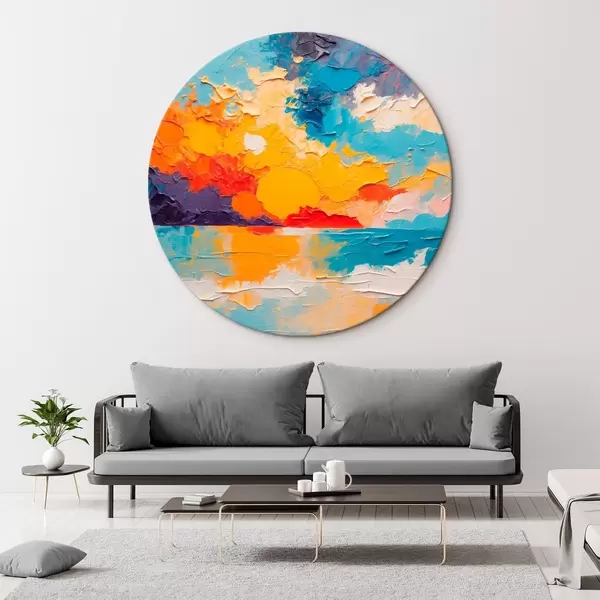 Ronde schilderijen Uitzicht op zee en zon in olieverfstijl r42258
