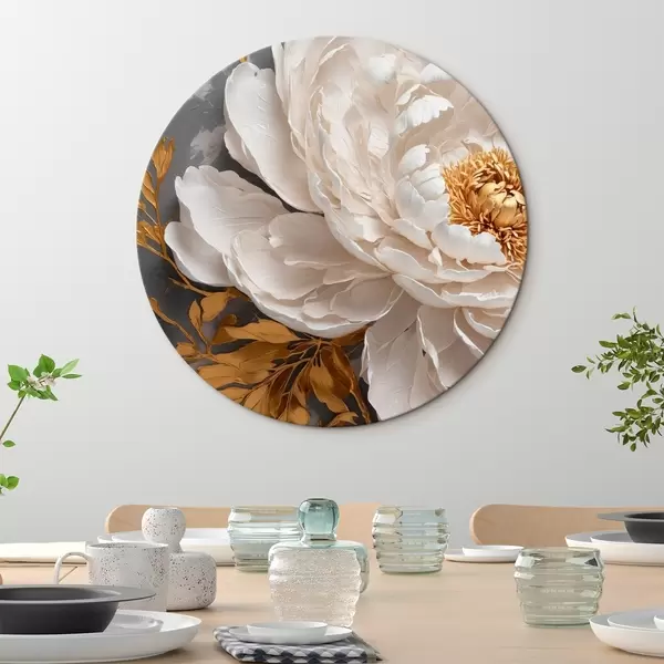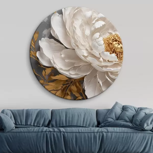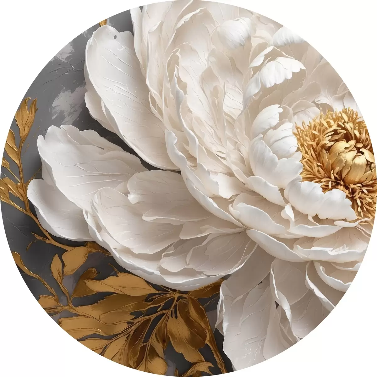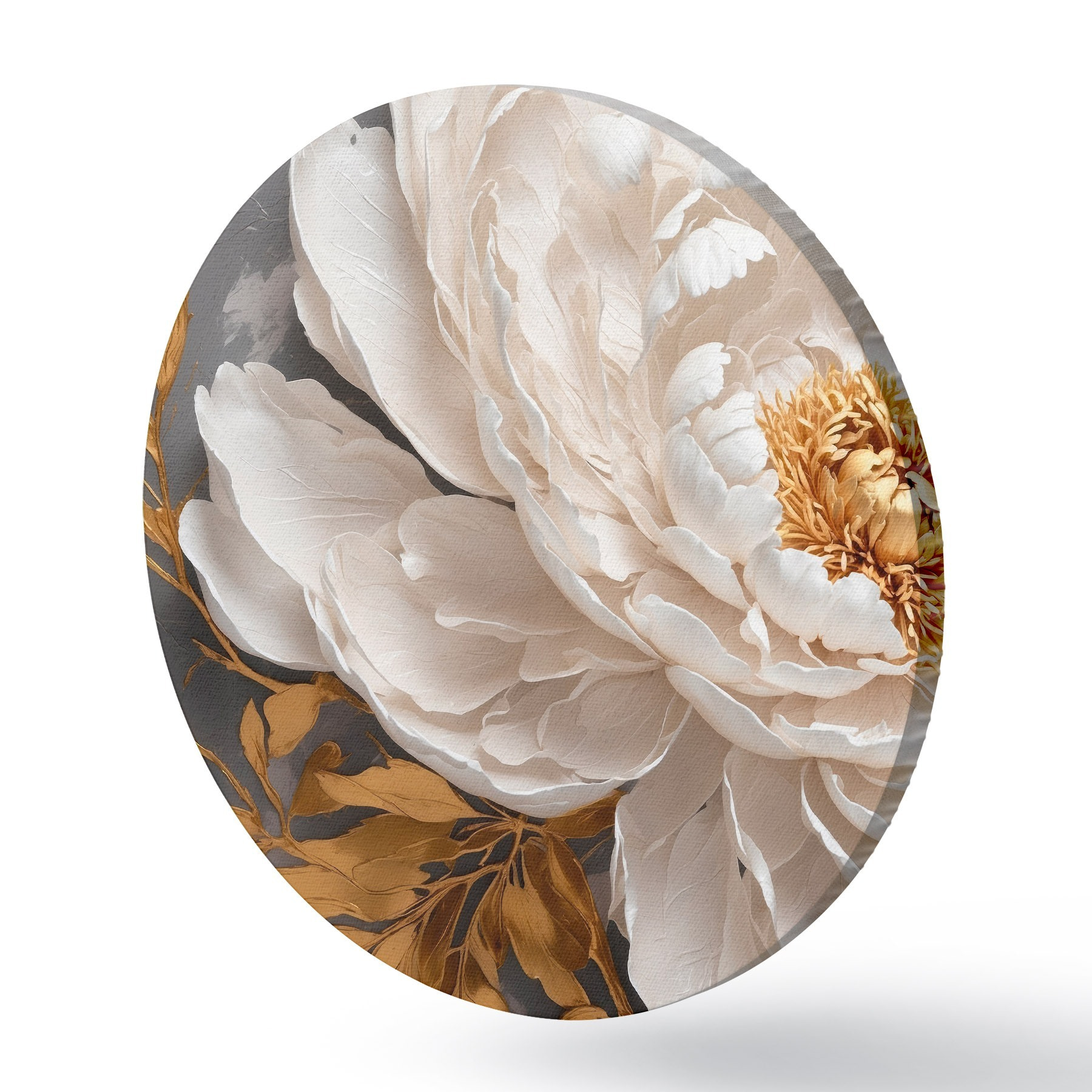 Ronde schilderijen Witte pioen op grijze achtergrond r42260