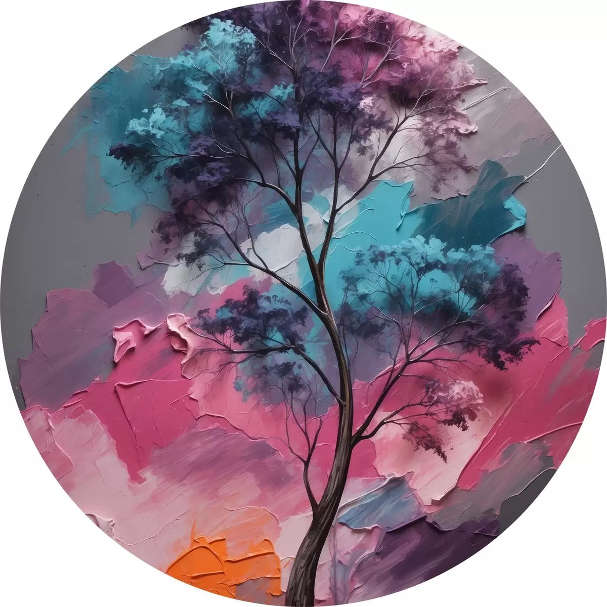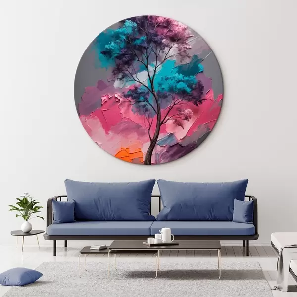 Ronde schilderijen Boom op roze-grijze achtergrond r42262