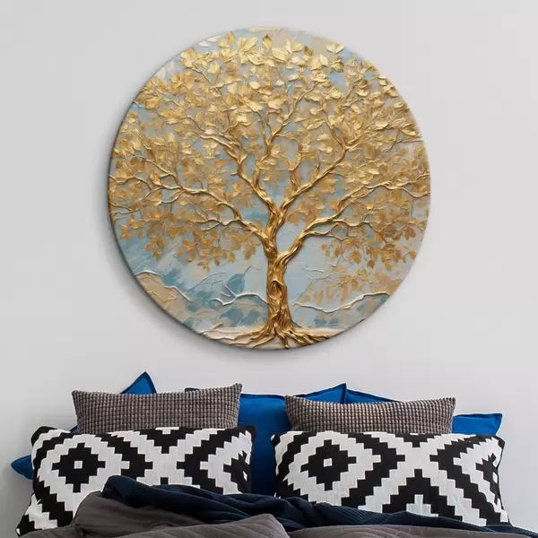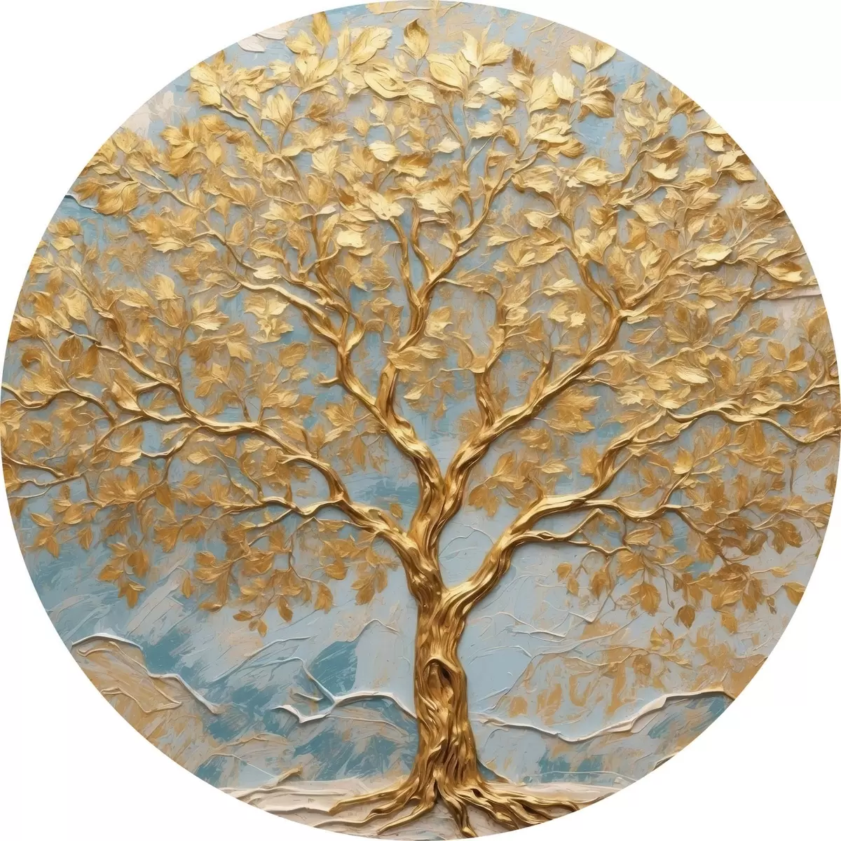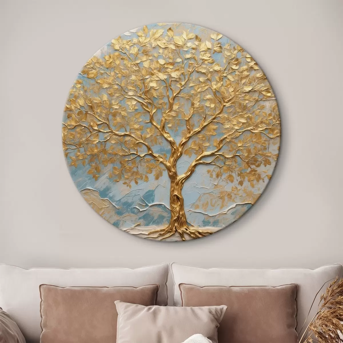 Ronde schilderijen Gele boom op blauw-witte achtergrond r42266