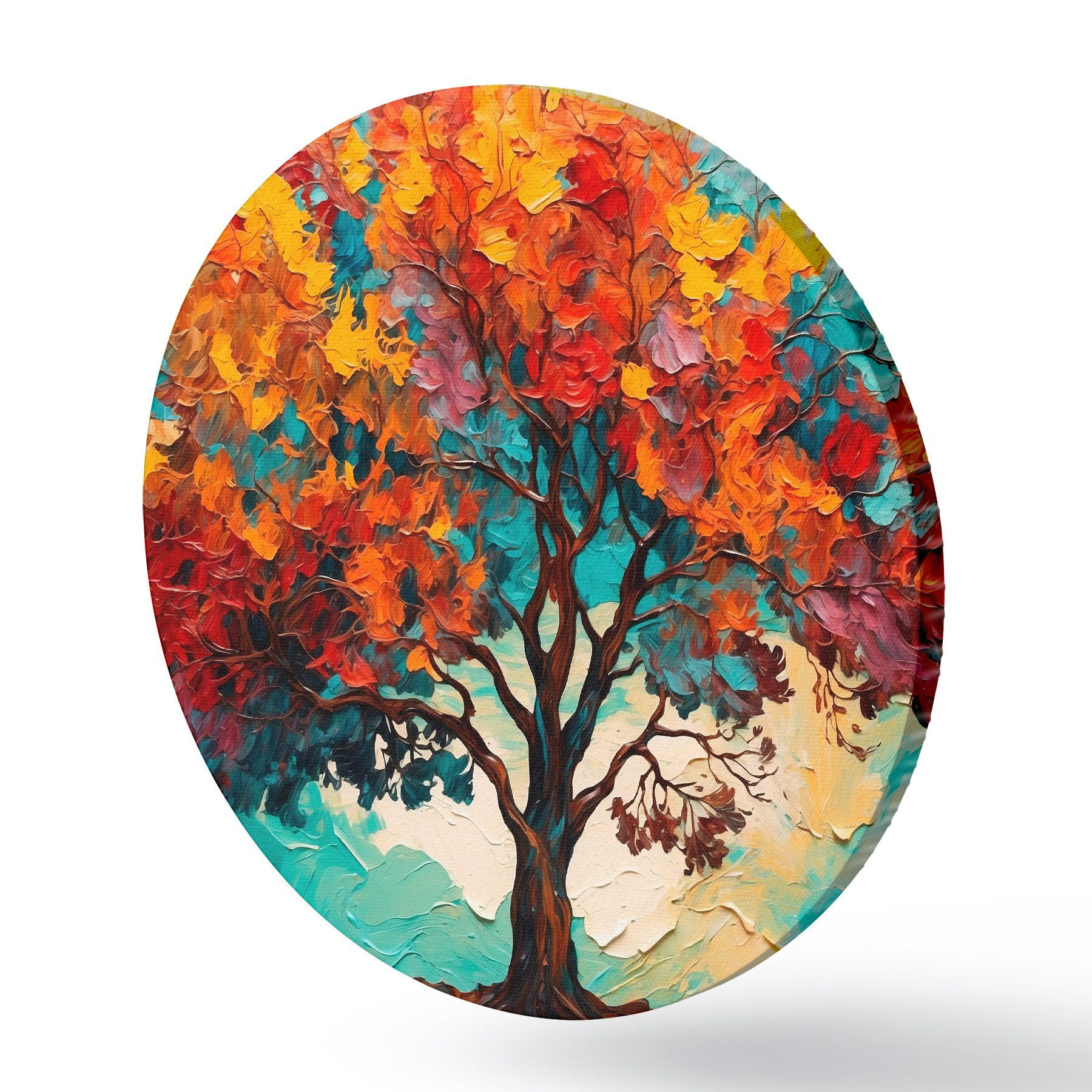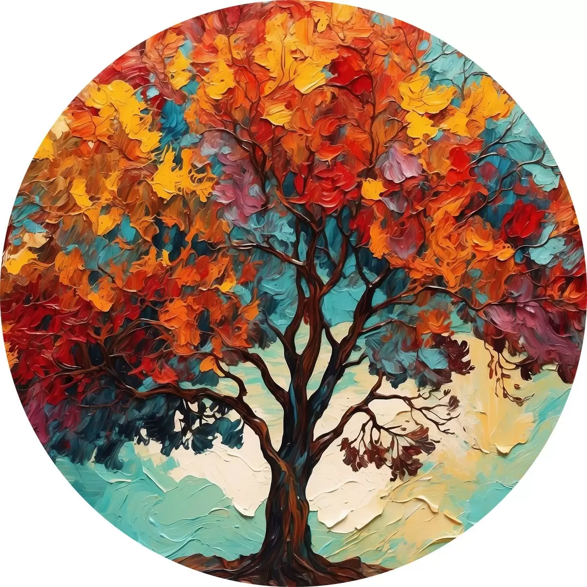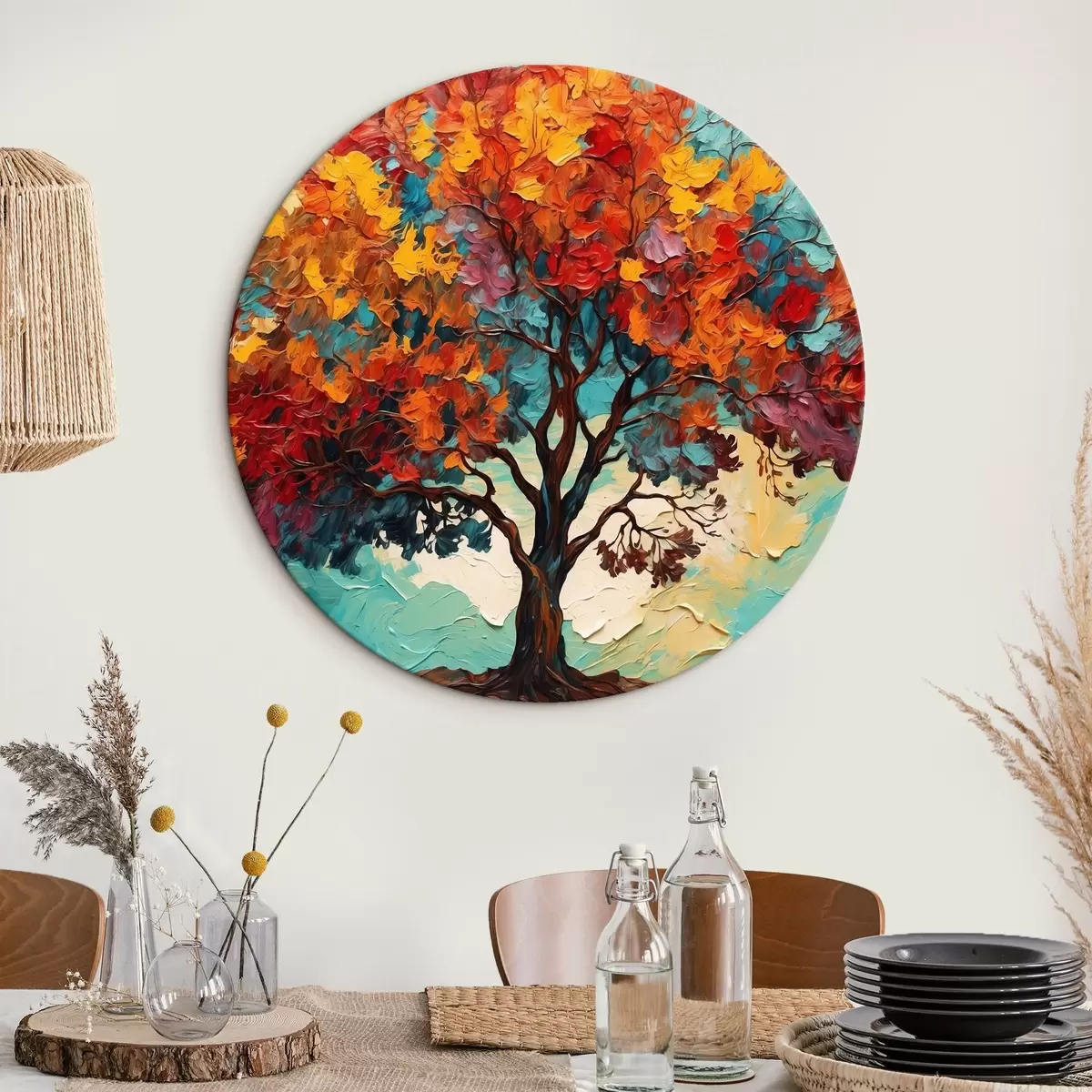 Ronde schilderijen Boom op oranje-blauwe achtergrond in olieverfstijl r42267