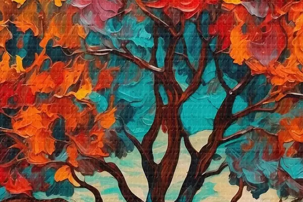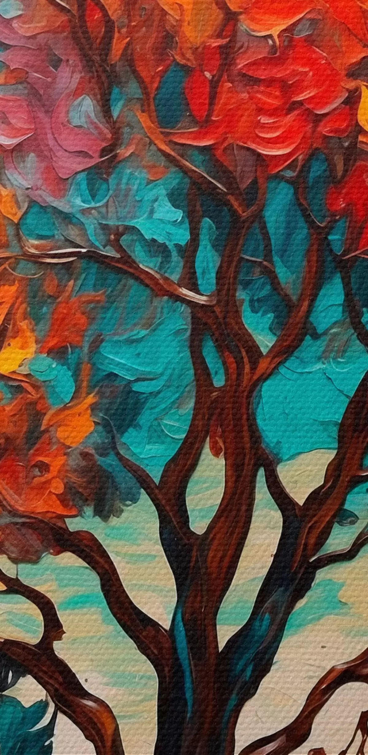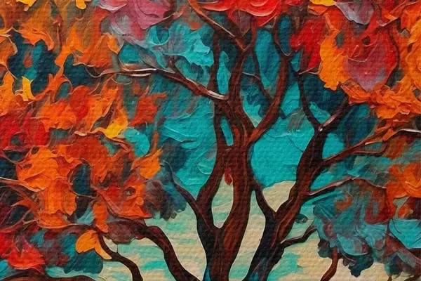 Afbeelding Boom op oranje-blauwe achtergrond in olieverfstijl Nr r42267