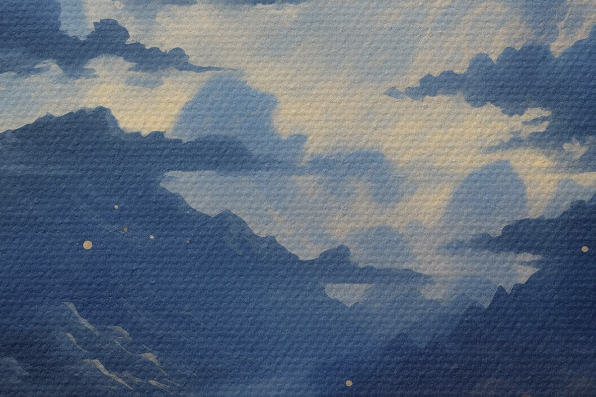 Het schilderij kan voorzichtig worden schoongeveegd met een droge zachte doek of spons; het wordt niet aanbevolen om natte producten te gebruiken. Het gebruik van een vochtige spons is alleen toegestaan als het schilderij gevernist is.
