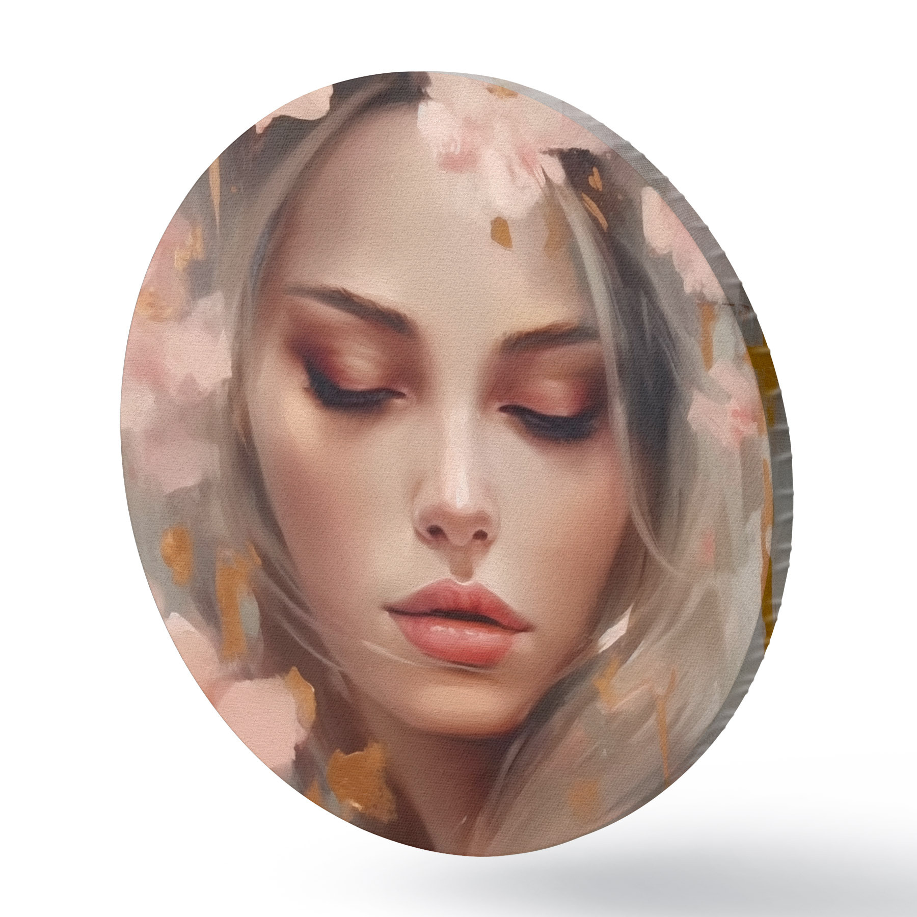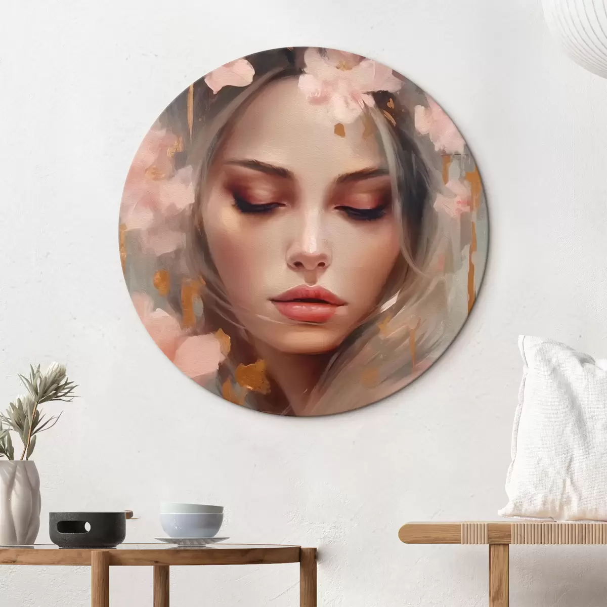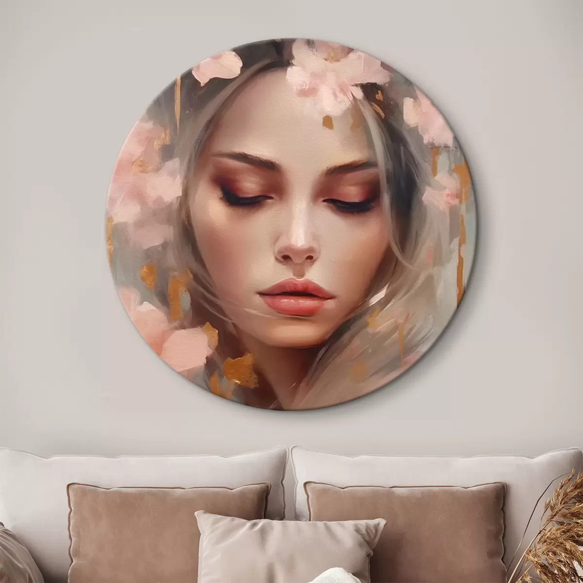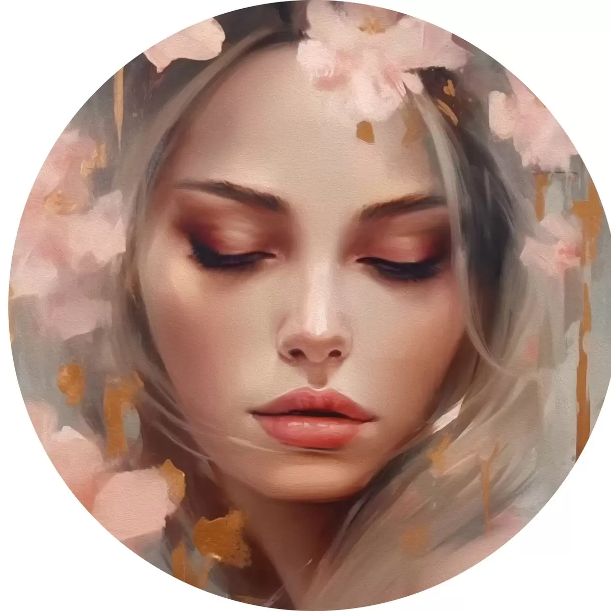 Ronde schilderijen Mooi meisje en bloemen r42299