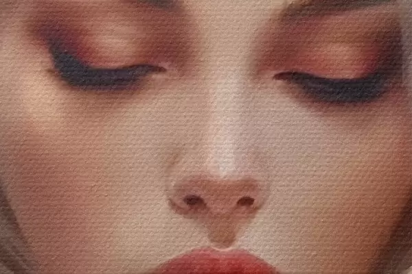 De fijne weving van draden op dit doek lijkt op het oppervlak van professionele schildersdoeken.
