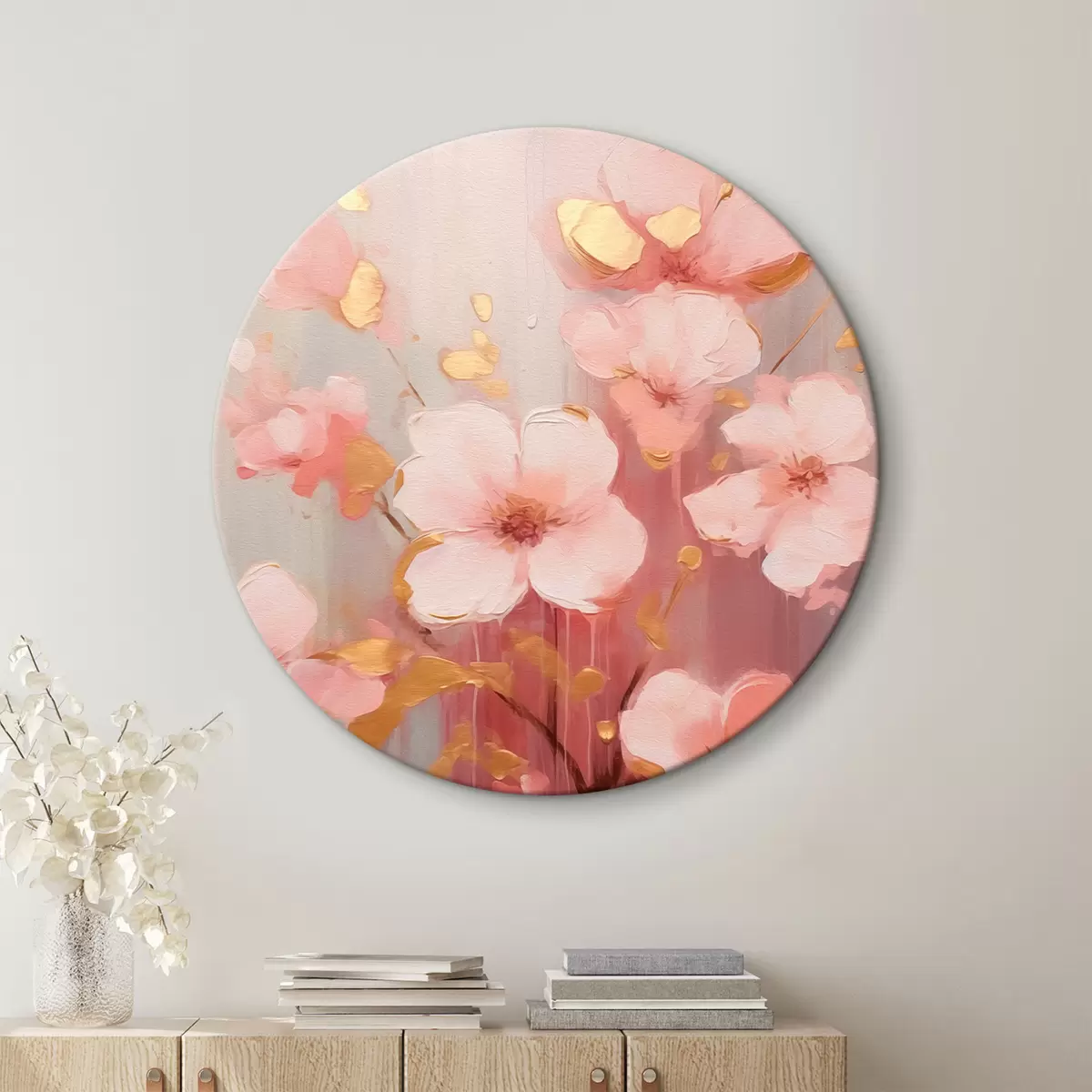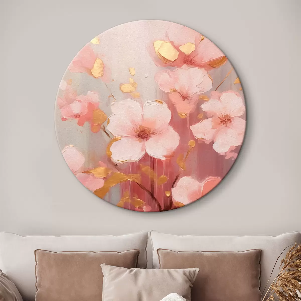 Ronde schilderijen Roze bloemen r42314