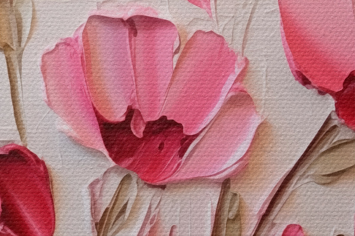 Er zijn drie soorten materiaal te bestellen: Economic Canvas - een dicht en duurzaam materiaal voor digitaal printen, identiek aan schildersdoek, waterdicht oppervlak, realistische weergave van details, materiaal met gemiddelde korrel. Premium Canvas - de textuur lijkt op die van schildersdoek (verweven kleine draden). Zachte, gedetailleerde reproductie van de afbeelding op een mat oppervlak. Eco-Premium - hoogwaardige 100% katoenen stof. Dankzij de natuurlijke katoenvezels is het materiaal duurzaam en slijtvast. Uitstekende kleurweergave en detail.