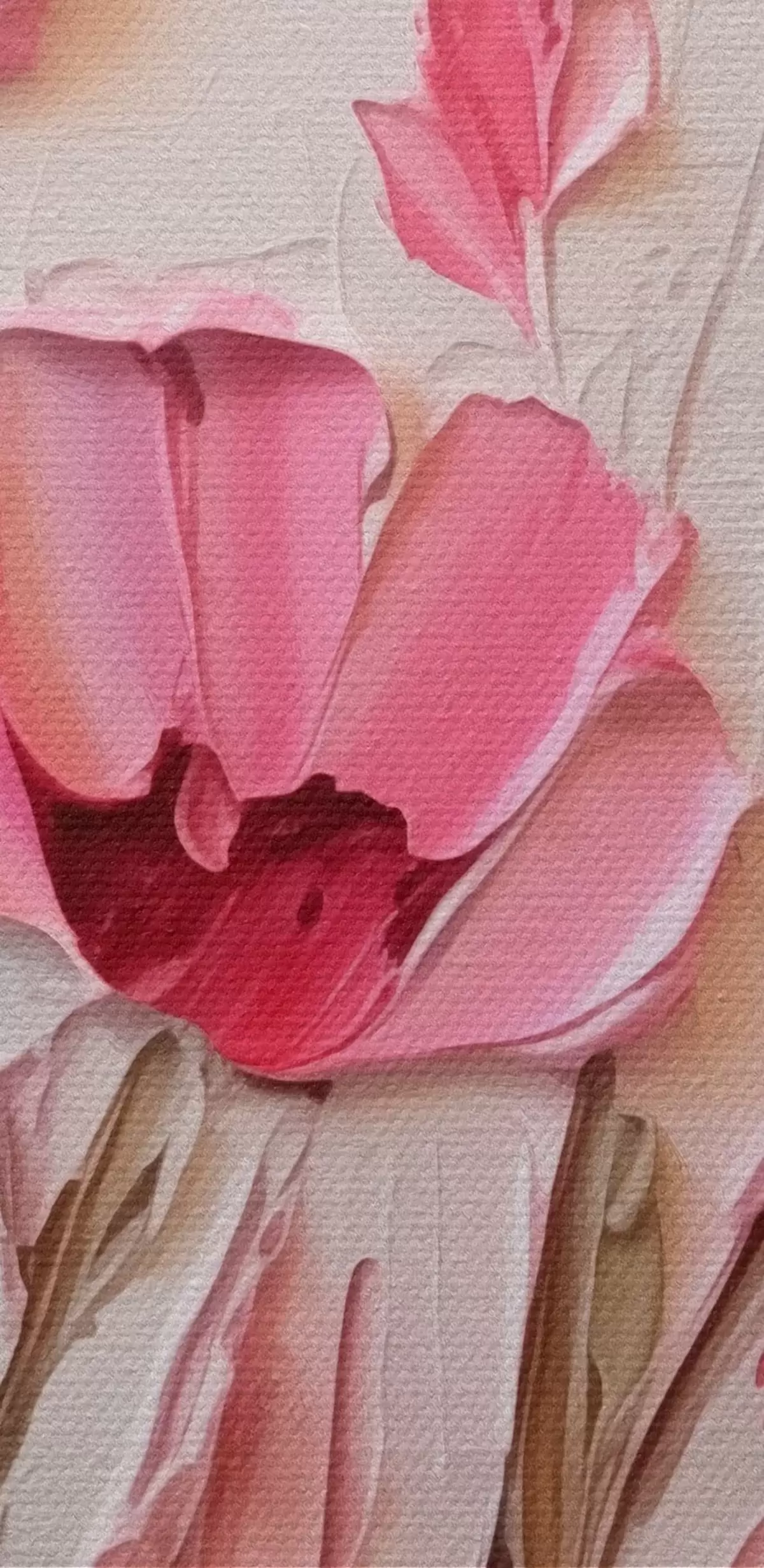 Het schilderij kan direct na ontvangst worden opgehangen. Het schilderij wordt opgespannen op een 2 cm breed houten spieraam.