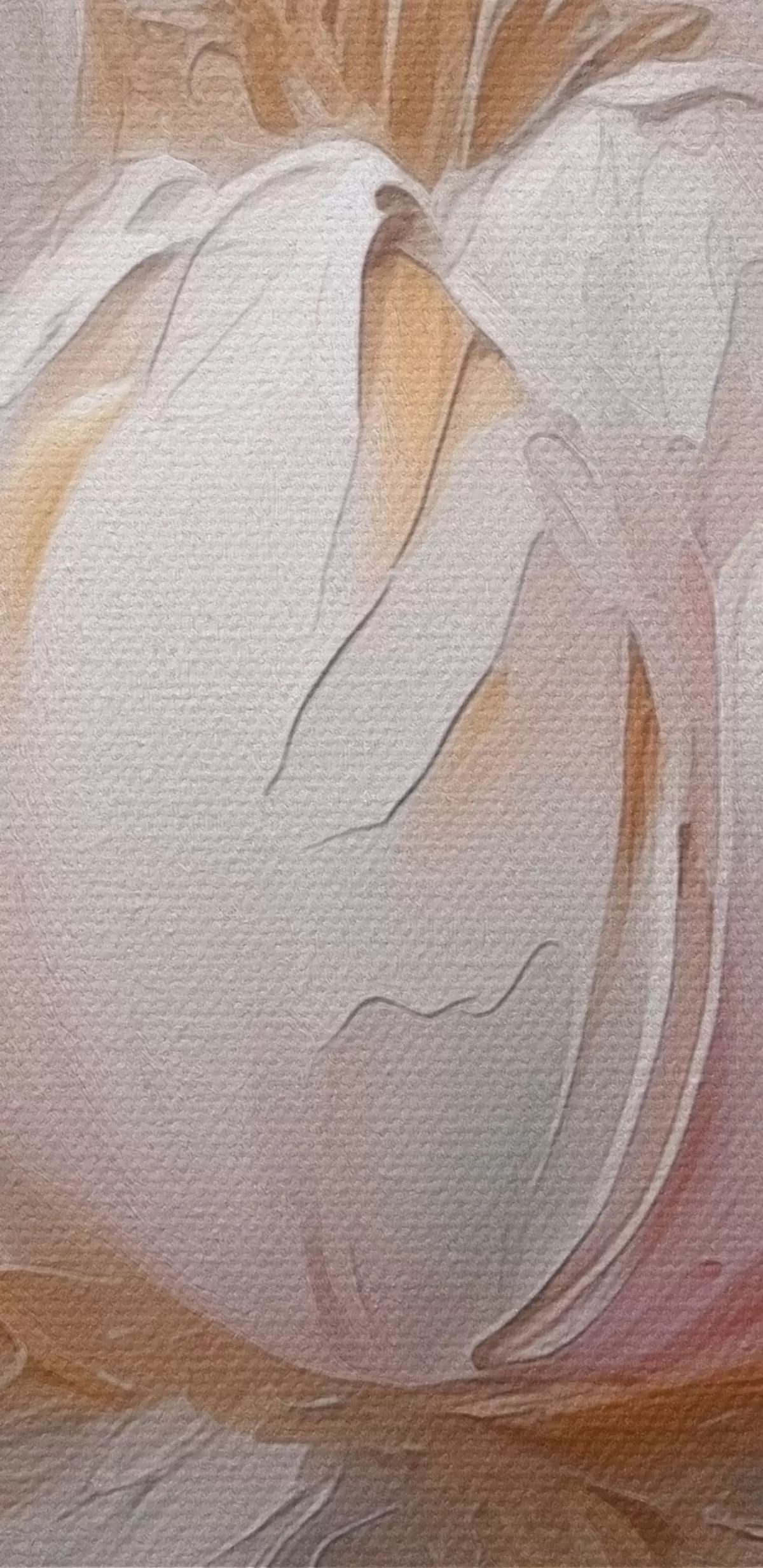 Het schilderij kan direct na ontvangst worden opgehangen. Het schilderij wordt opgespannen op een 2 cm breed houten spieraam.