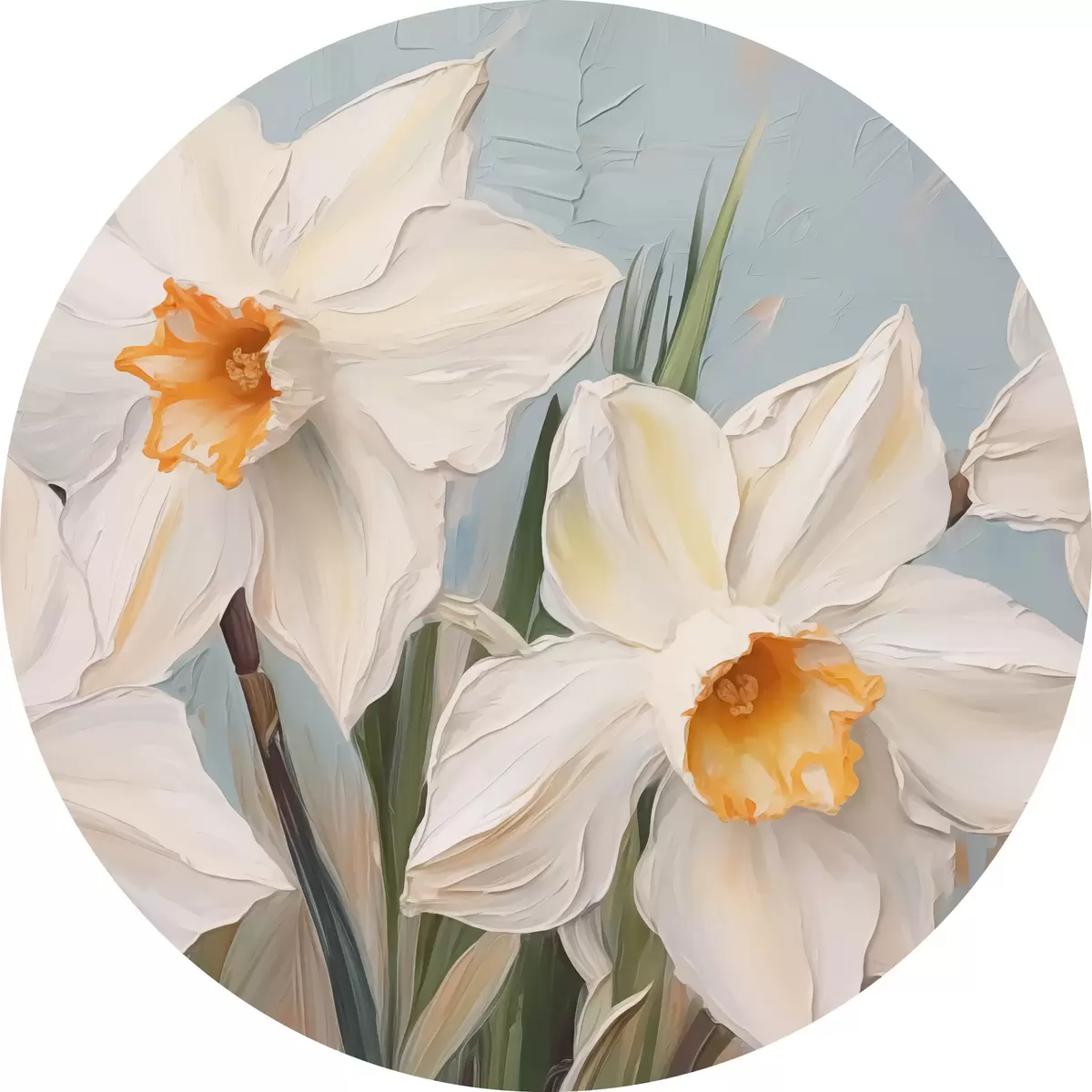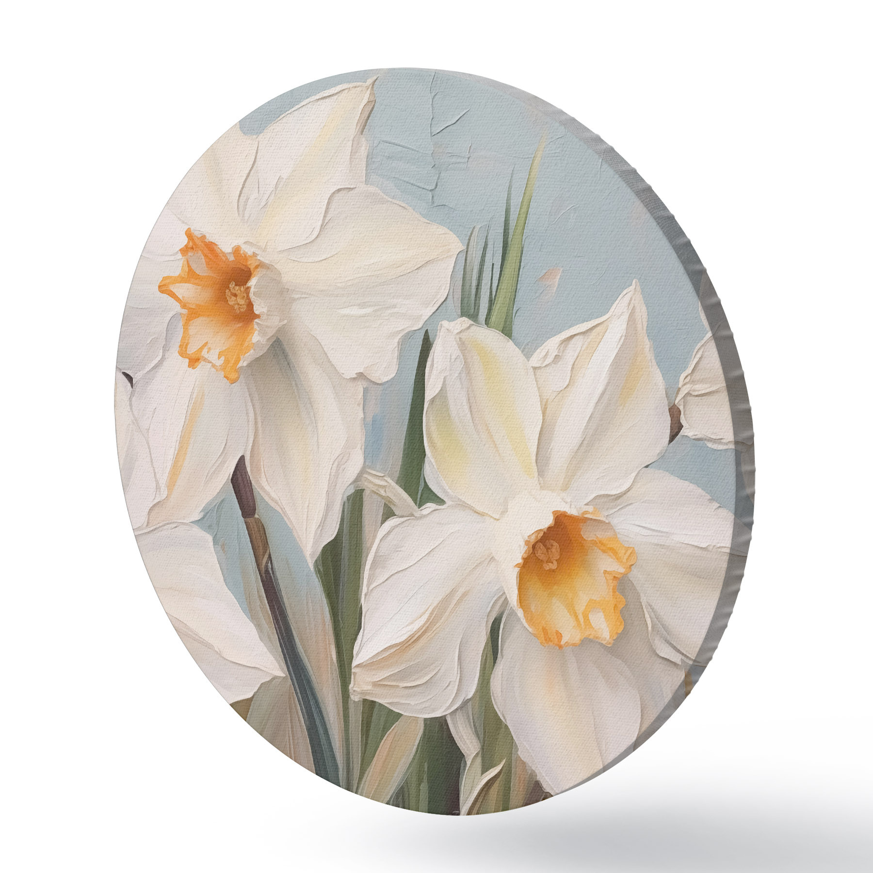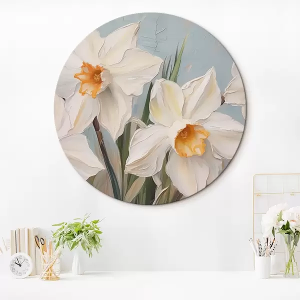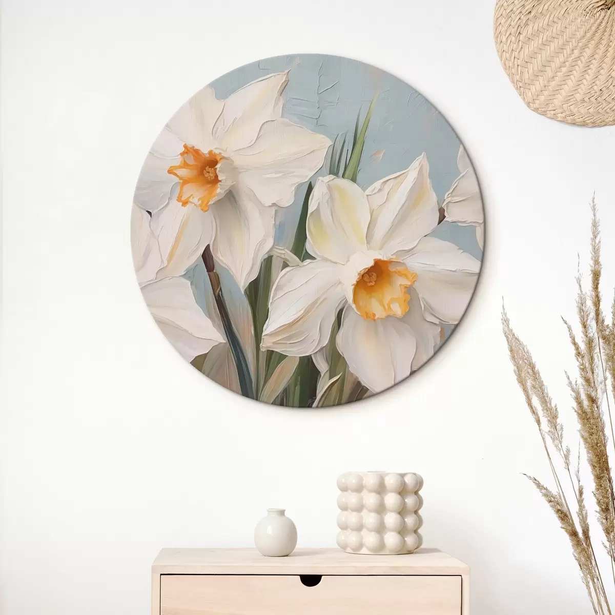 Ronde schilderijen Witte narcissen grote imitatie van schilderij r42355