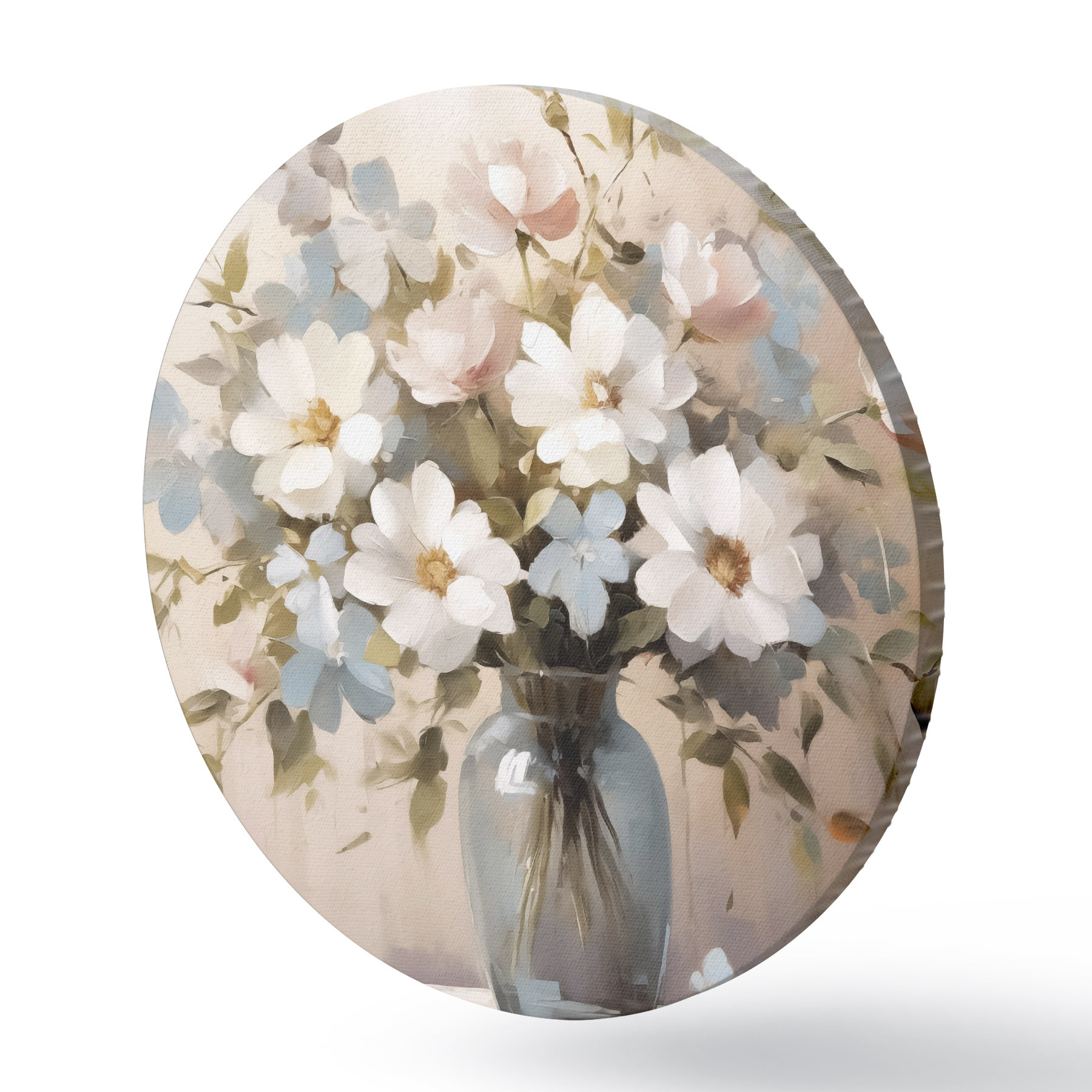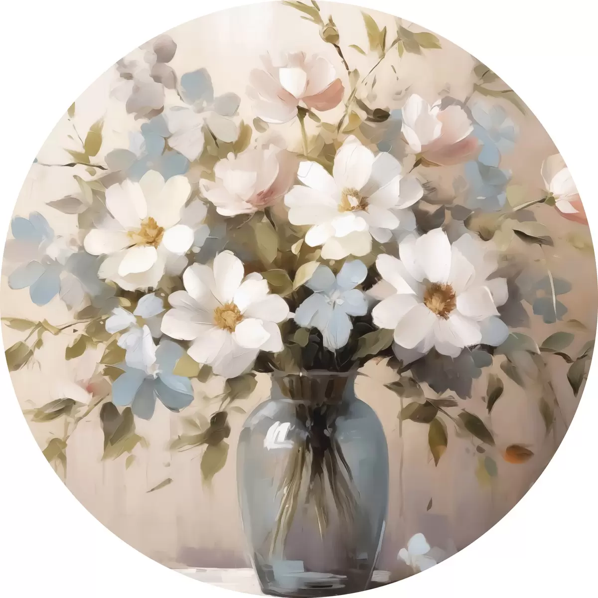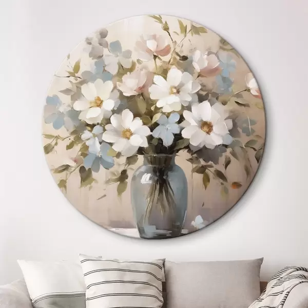 Ronde schilderijen Boeket bloemen en takjes in een vaas imitatie van schilderij r42356