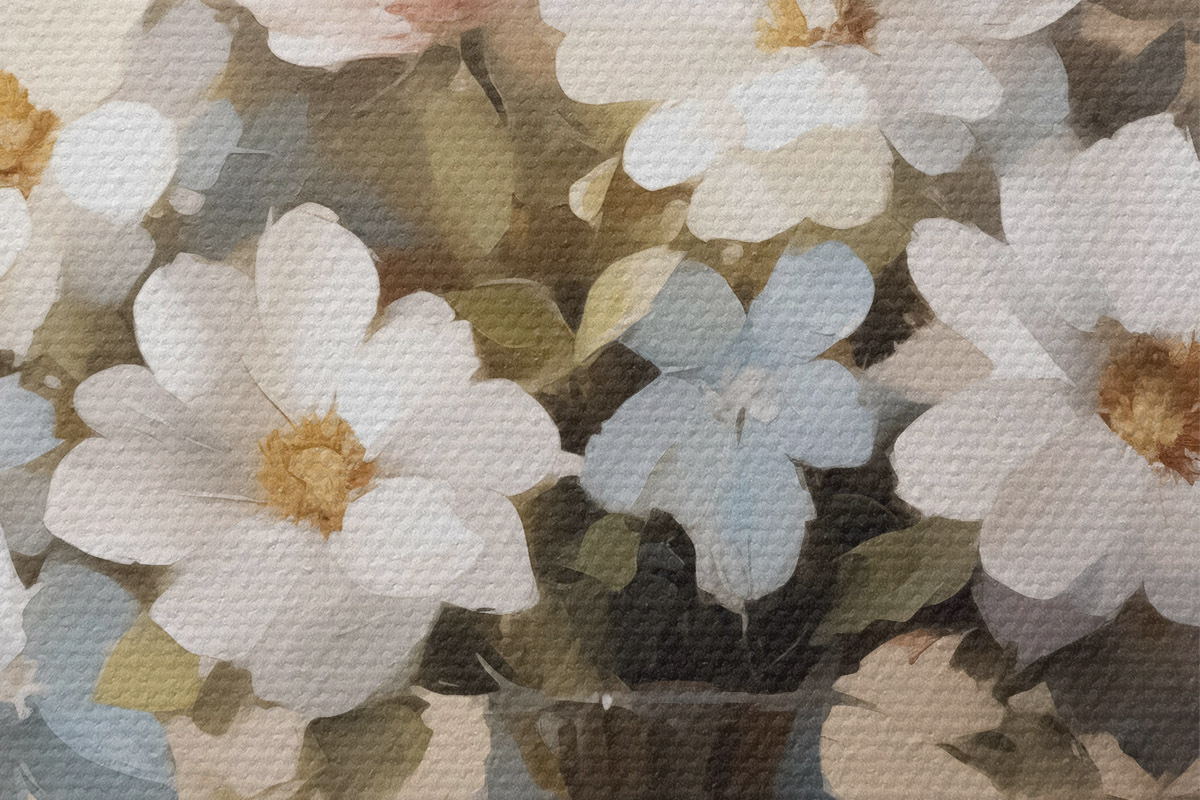 Er zijn drie soorten materiaal te bestellen: Economic Canvas - een dicht en duurzaam materiaal voor digitaal printen, identiek aan schildersdoek, waterdicht oppervlak, realistische weergave van details, materiaal met gemiddelde korrel. Premium Canvas - de textuur lijkt op die van schildersdoek (verweven kleine draden). Zachte, gedetailleerde reproductie van de afbeelding op een mat oppervlak. Eco-Premium - hoogwaardige 100% katoenen stof. Dankzij de natuurlijke katoenvezels is het materiaal duurzaam en slijtvast. Uitstekende kleurweergave en detail.