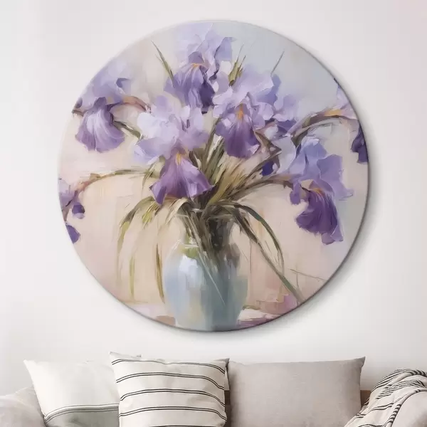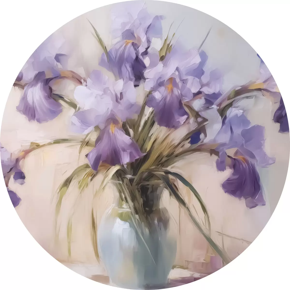 Ronde schilderijen Irissen in een vaas imitatie van schilderij r42357