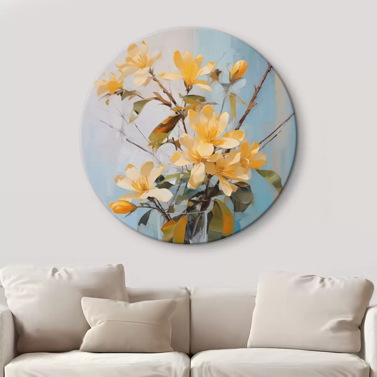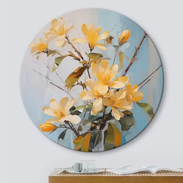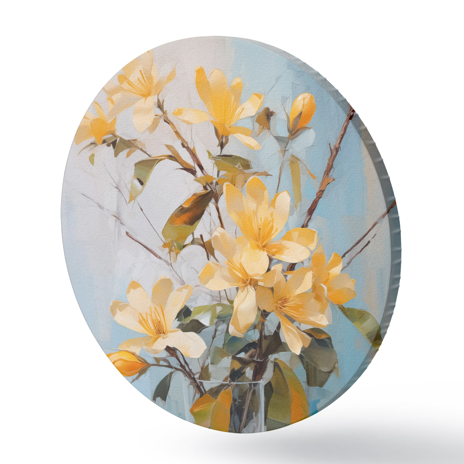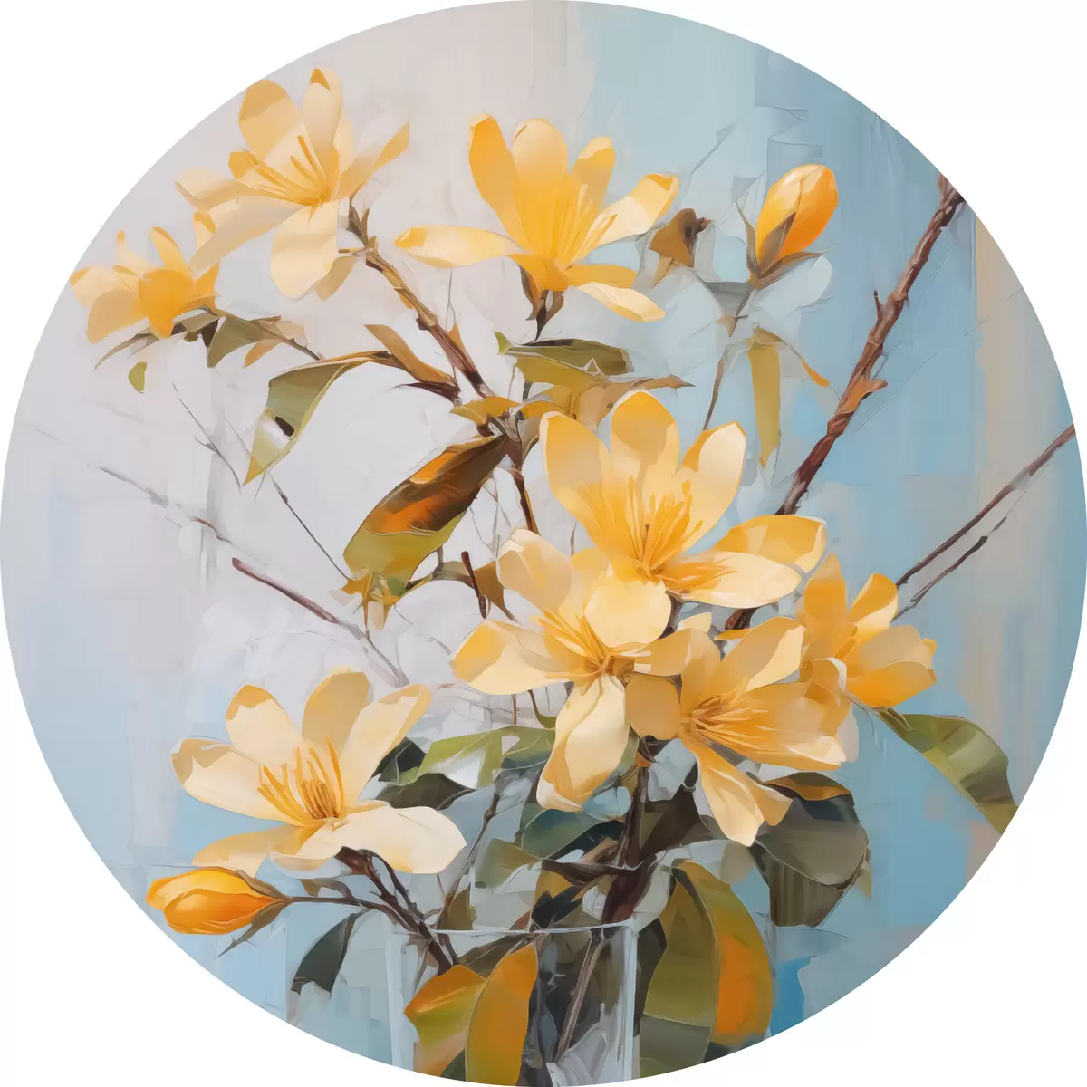 Ronde schilderijen Takken met gele bloemen in een vaas imitatie van schilderij r42358