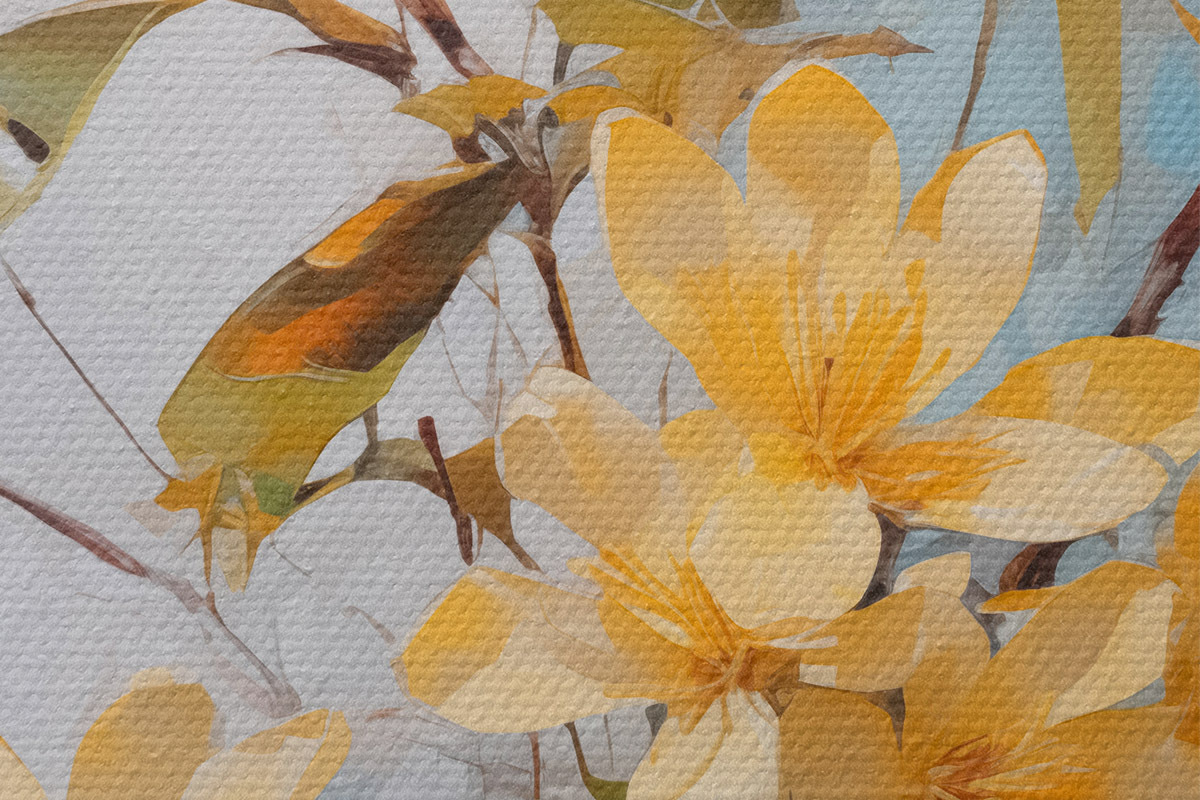 Er zijn drie soorten materiaal te bestellen: Economic Canvas - een dicht en duurzaam materiaal voor digitaal printen, identiek aan schildersdoek, waterdicht oppervlak, realistische weergave van details, materiaal met gemiddelde korrel. Premium Canvas - de textuur lijkt op die van schildersdoek (verweven kleine draden). Zachte, gedetailleerde reproductie van de afbeelding op een mat oppervlak. Eco-Premium - hoogwaardige 100% katoenen stof. Dankzij de natuurlijke katoenvezels is het materiaal duurzaam en slijtvast. Uitstekende kleurweergave en detail.