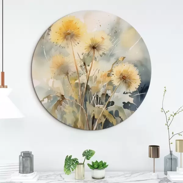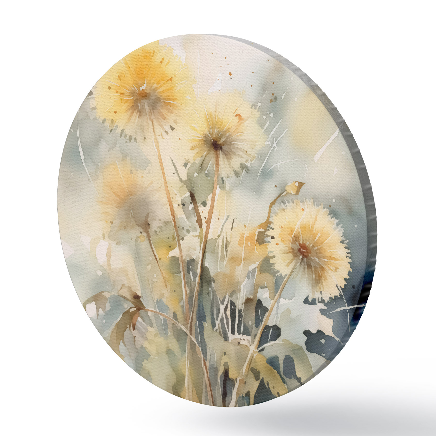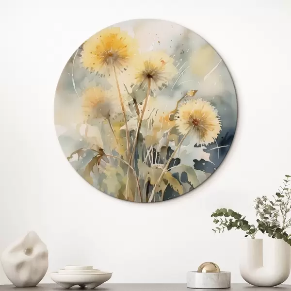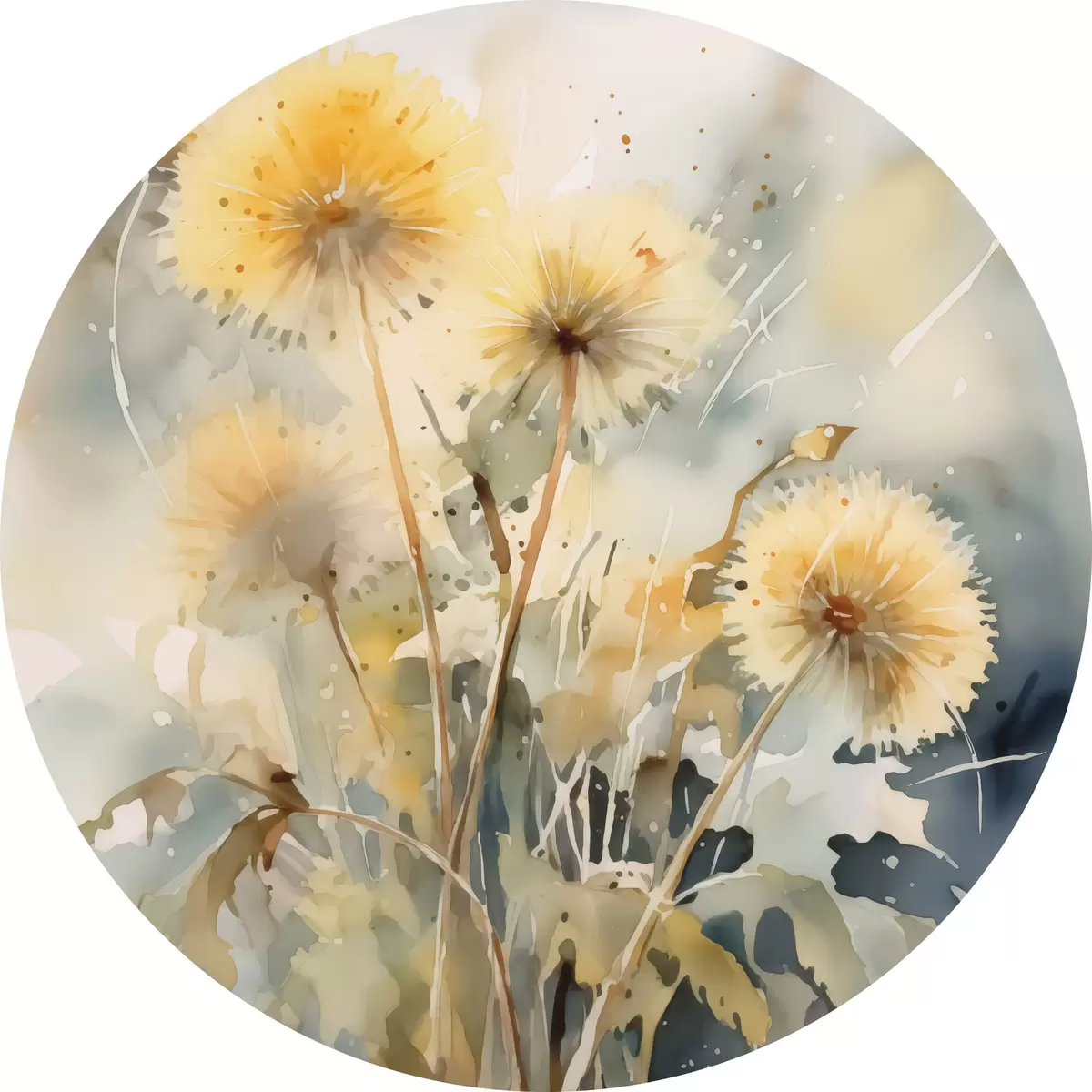 Ronde schilderijen Paardebloemen imitatie van vage aquarel r42369