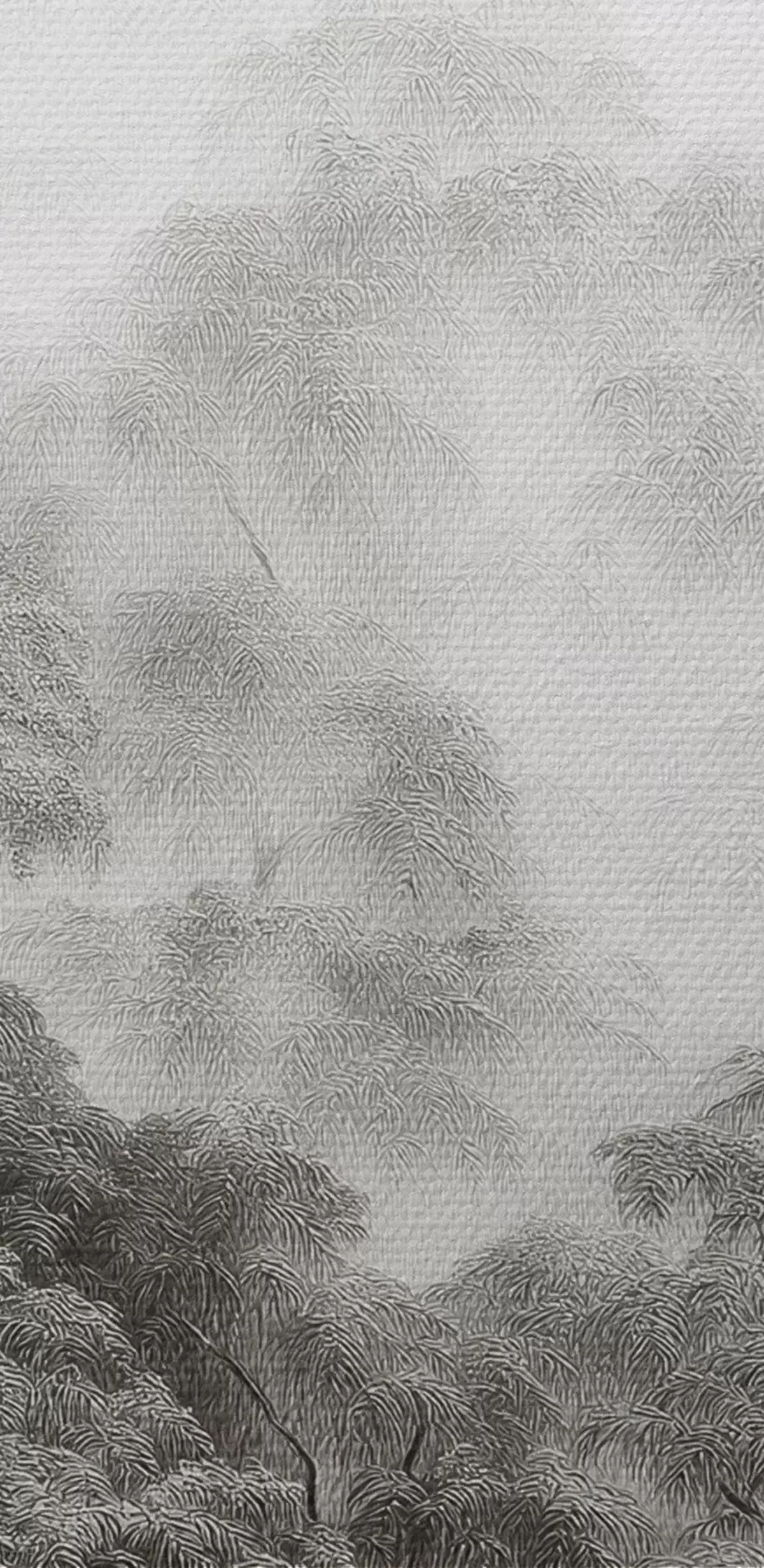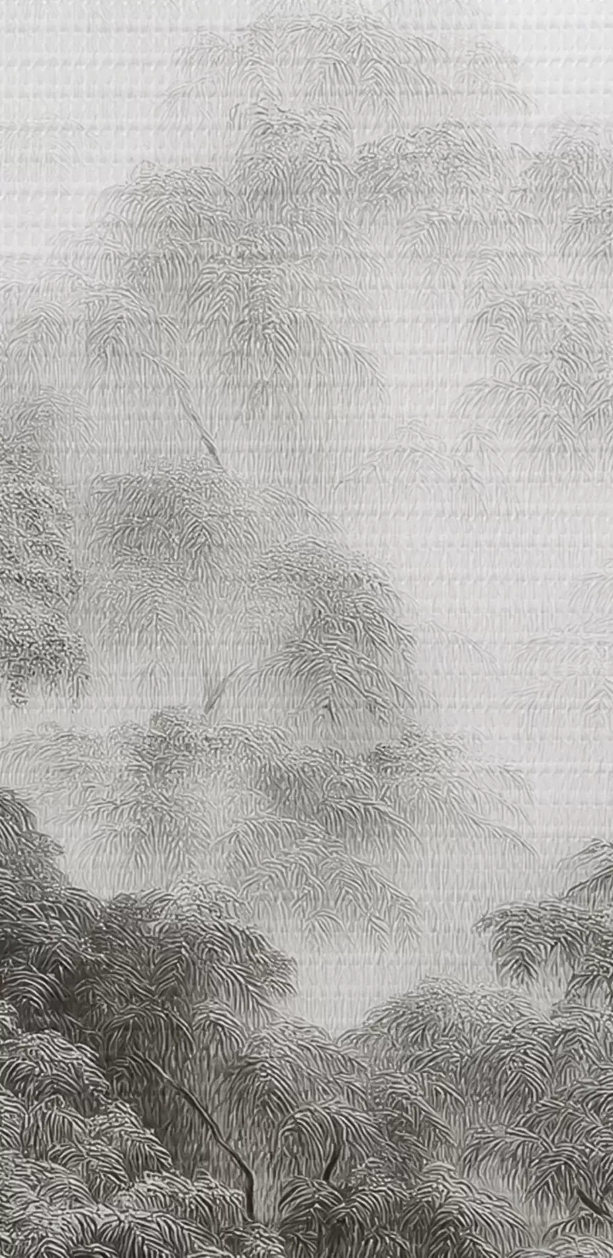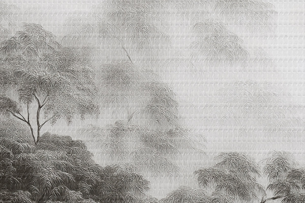 Afbeelding Tropisch bos in de mist, palmbomen, grijze kleuren Nr r42371v1