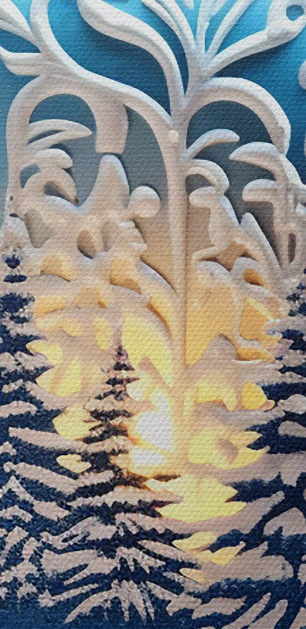Het schilderij kan direct na ontvangst worden opgehangen. Het schilderij wordt opgespannen op een 2 cm breed houten spieraam.