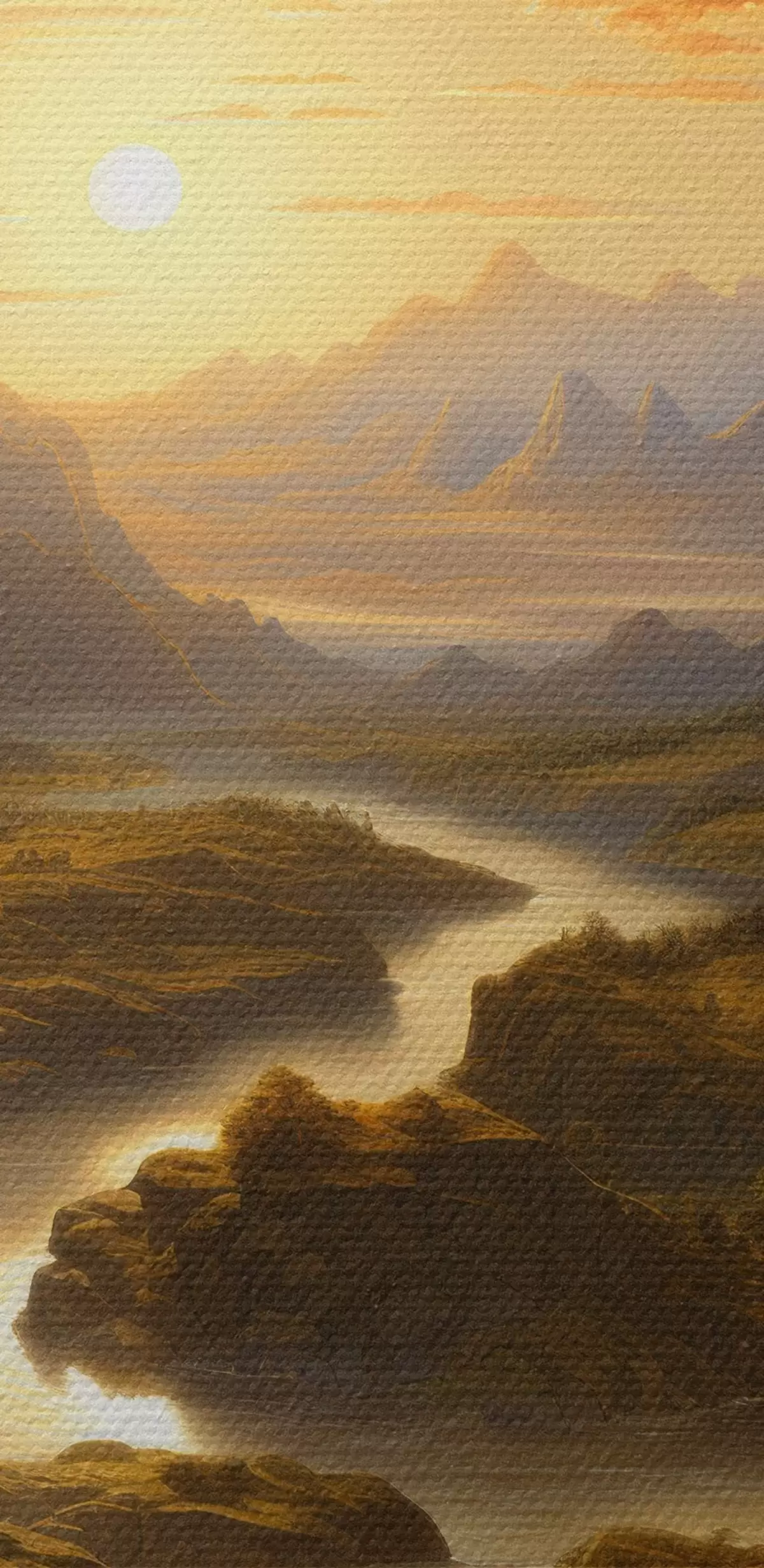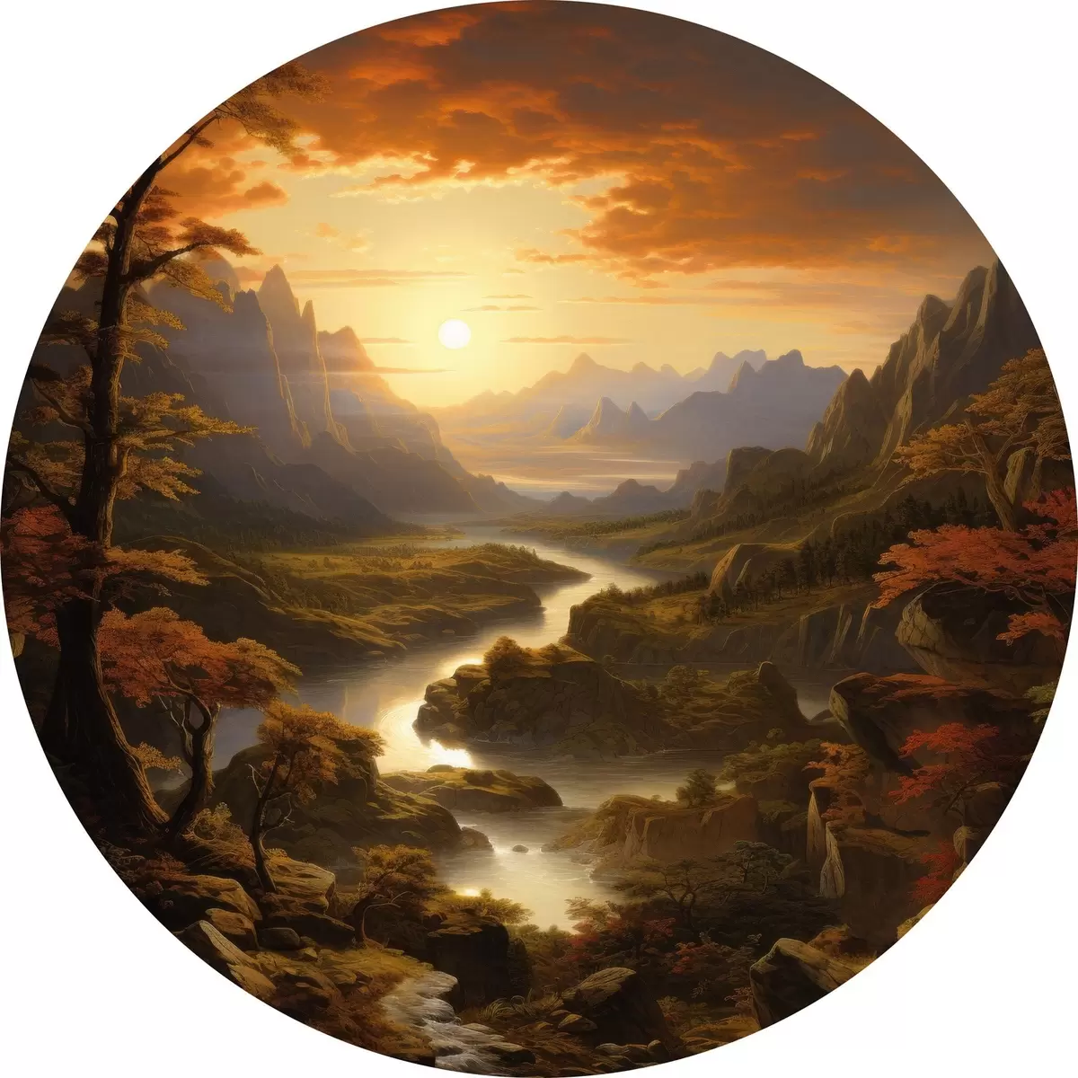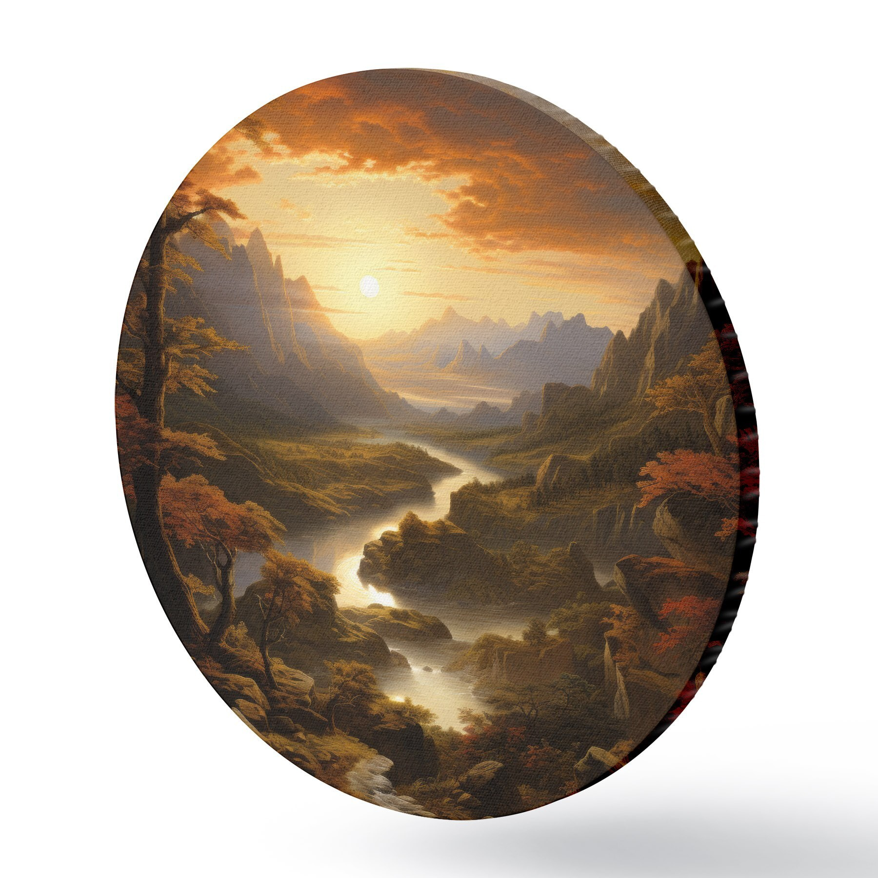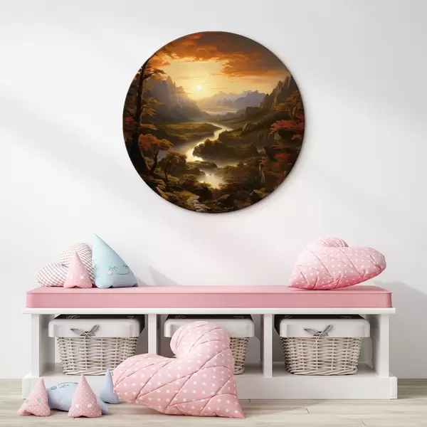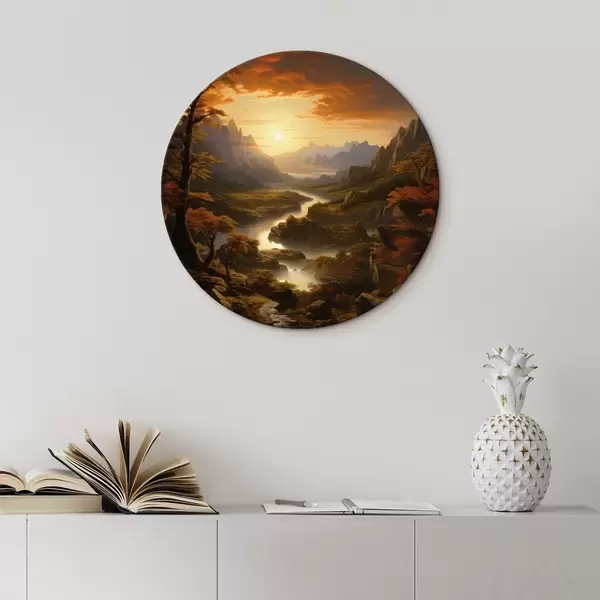 Ronde schilderijen Dageraad in de bergen r42385