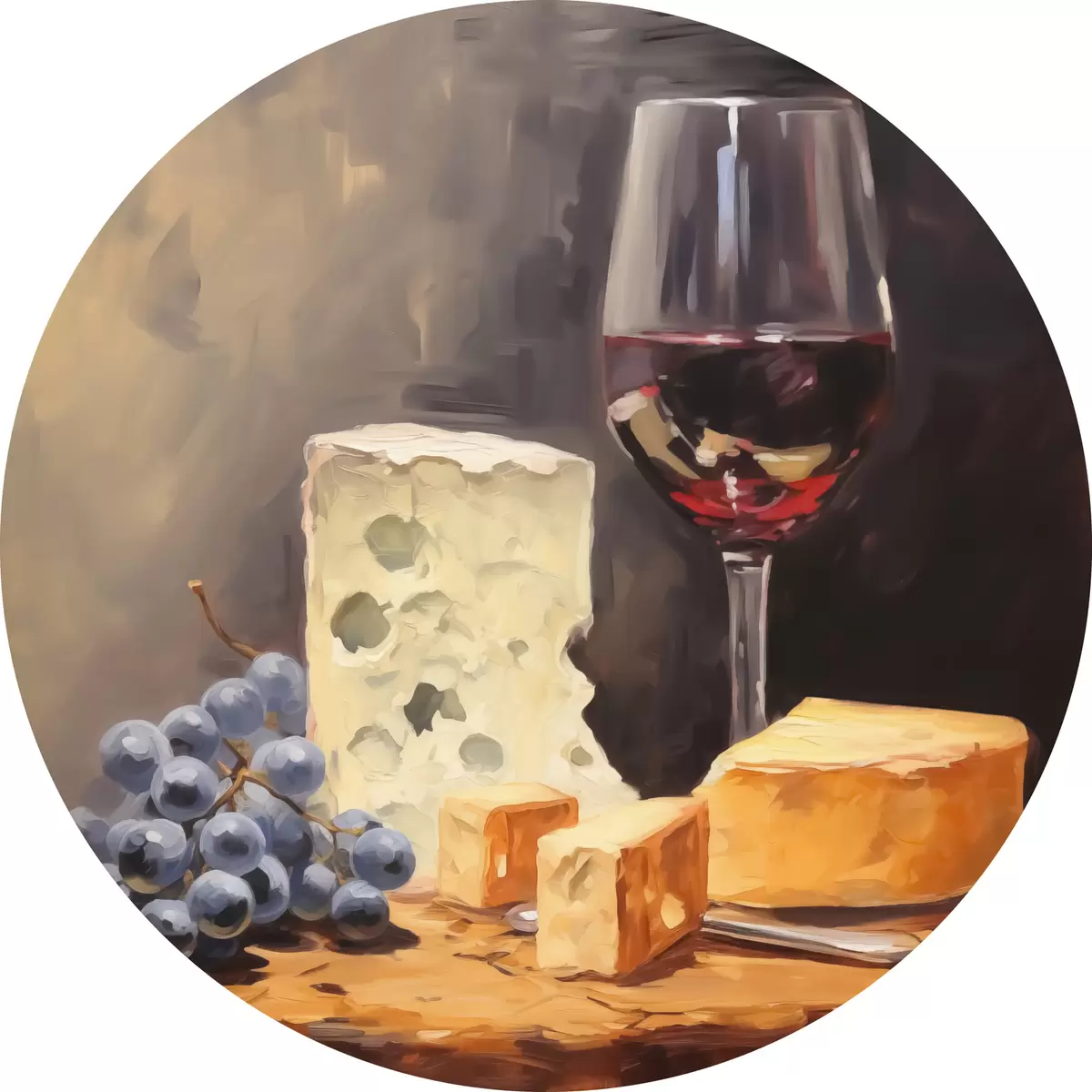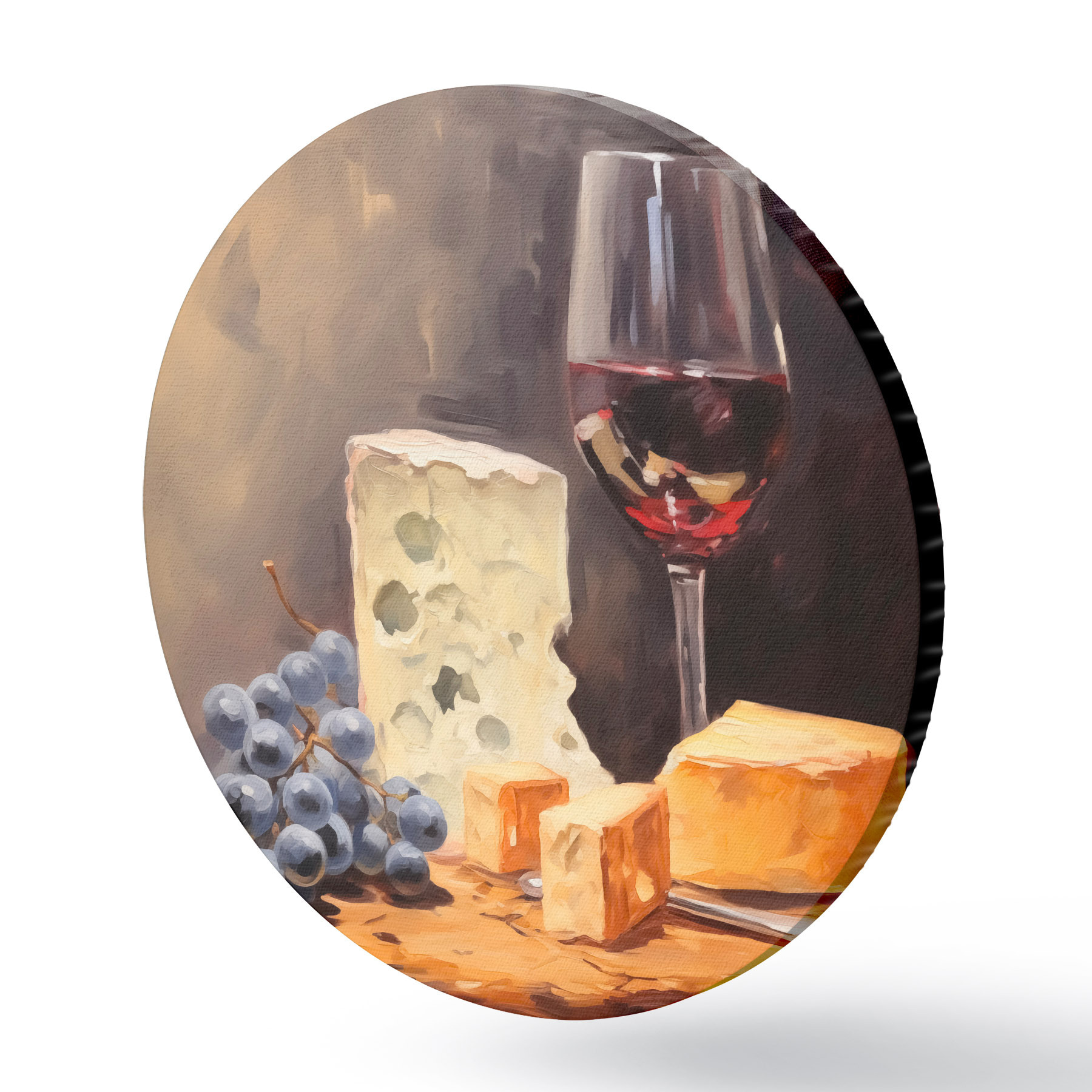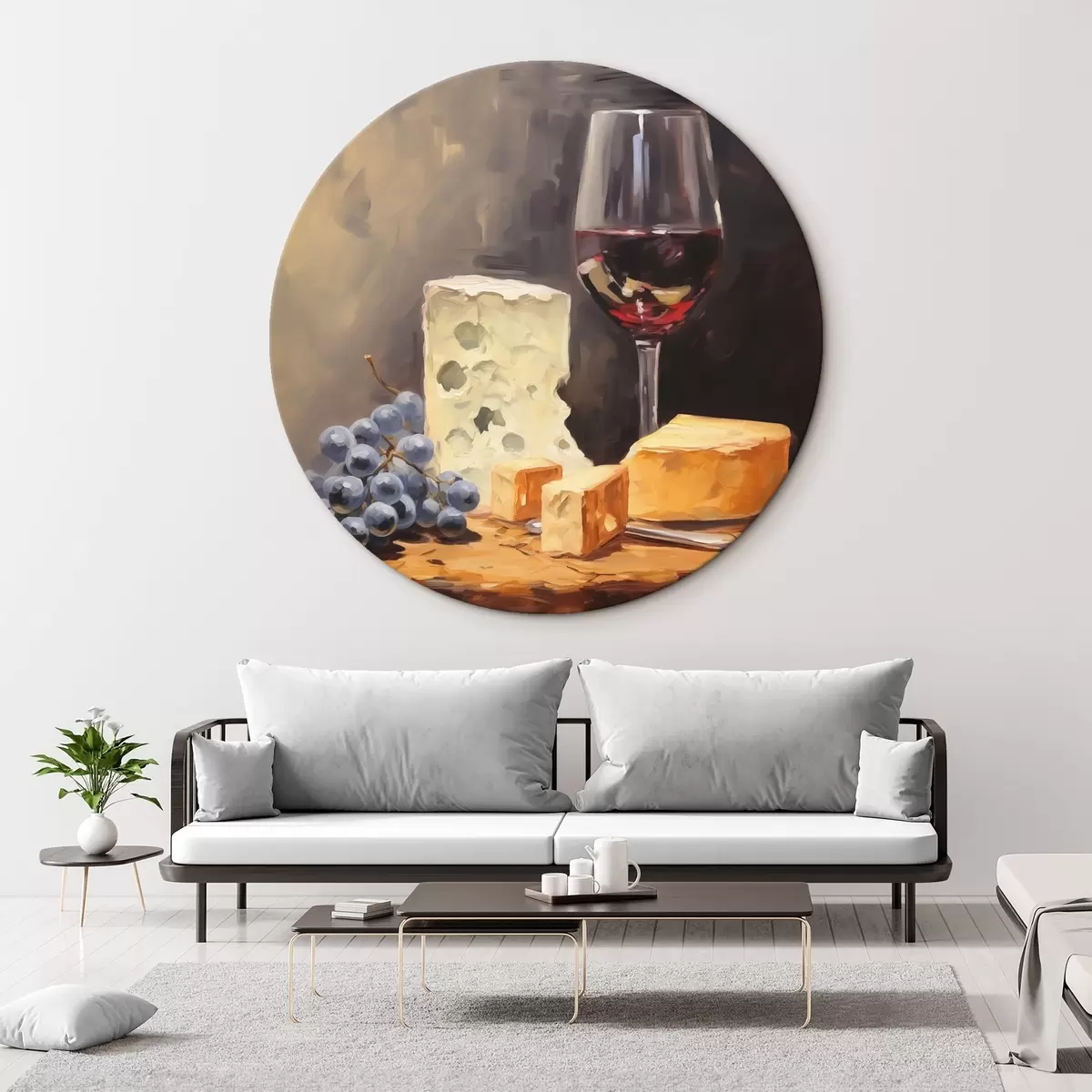 Ronde schilderijen Glas rode wijn en kaas imitatieschilderij r42415