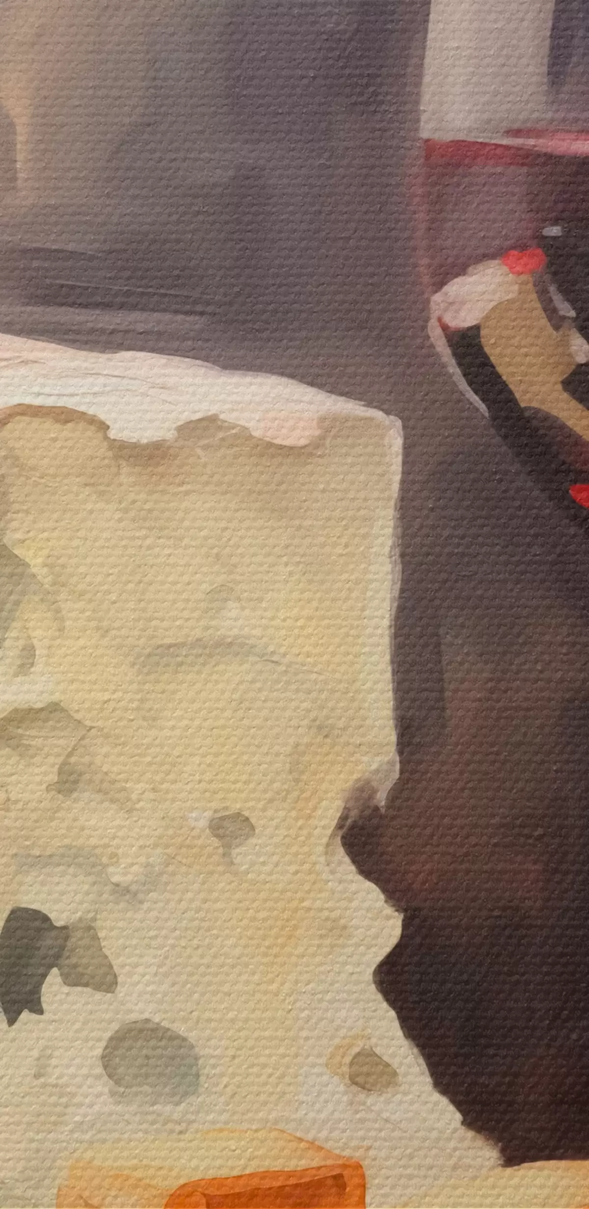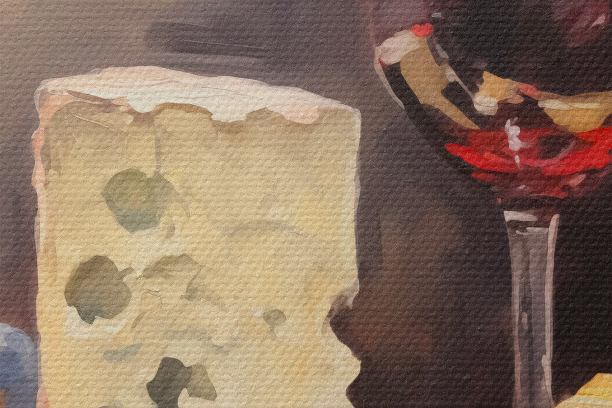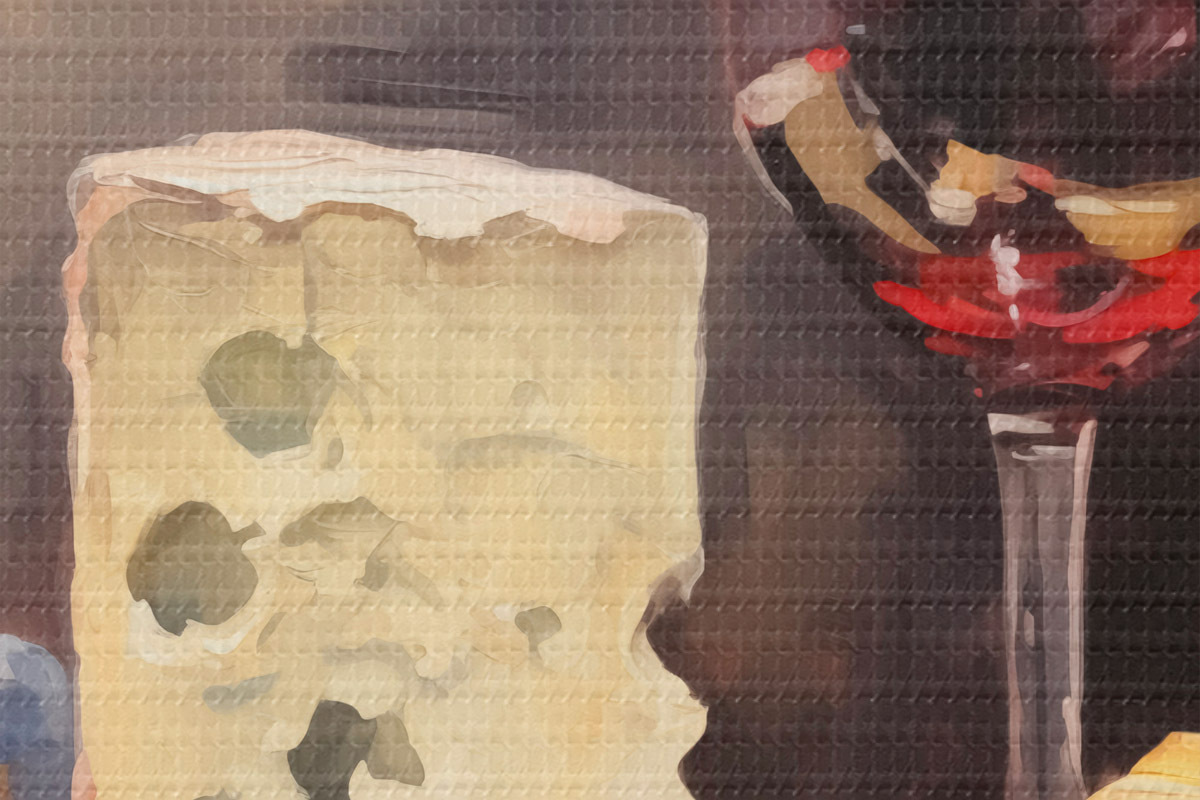 Afbeelding Glas rode wijn en kaas imitatieschilderij Nr r42415