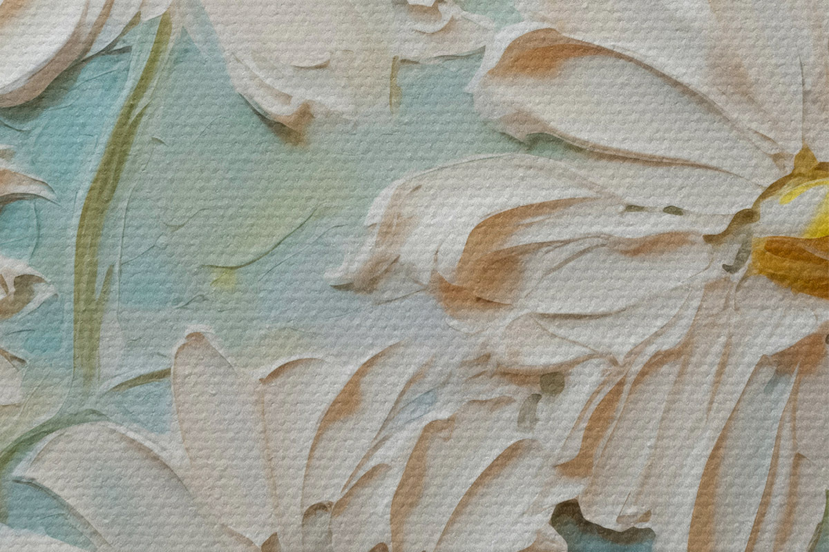 Er zijn drie soorten materiaal te bestellen: Economic Canvas - een dicht en duurzaam materiaal voor digitaal printen, identiek aan schildersdoek, waterdicht oppervlak, realistische weergave van details, materiaal met gemiddelde korrel. Premium Canvas - de textuur lijkt op die van schildersdoek (verweven kleine draden). Zachte, gedetailleerde reproductie van de afbeelding op een mat oppervlak. Eco-Premium - hoogwaardige 100% katoenen stof. Dankzij de natuurlijke katoenvezels is het materiaal duurzaam en slijtvast. Uitstekende kleurweergave en detail.