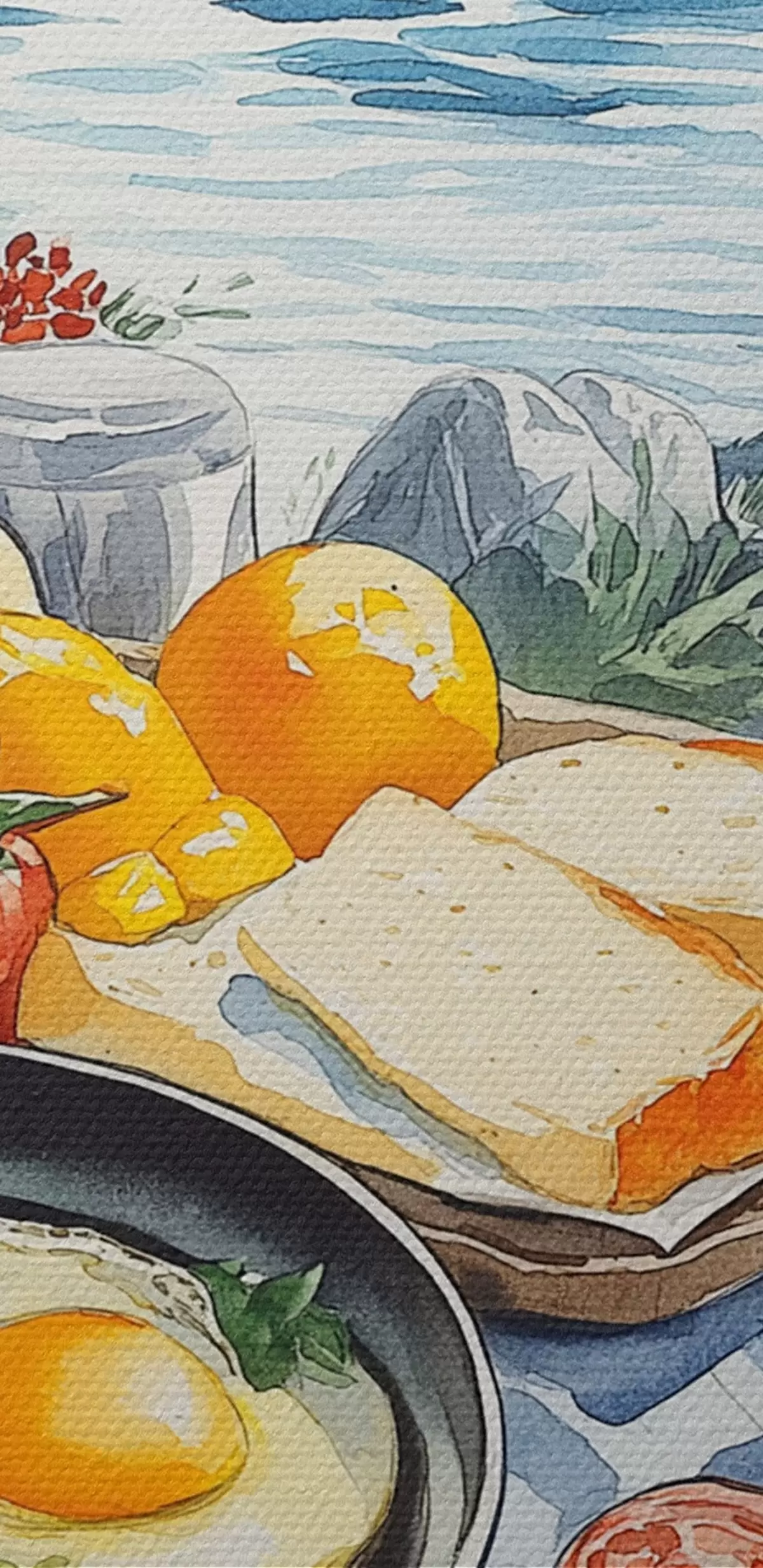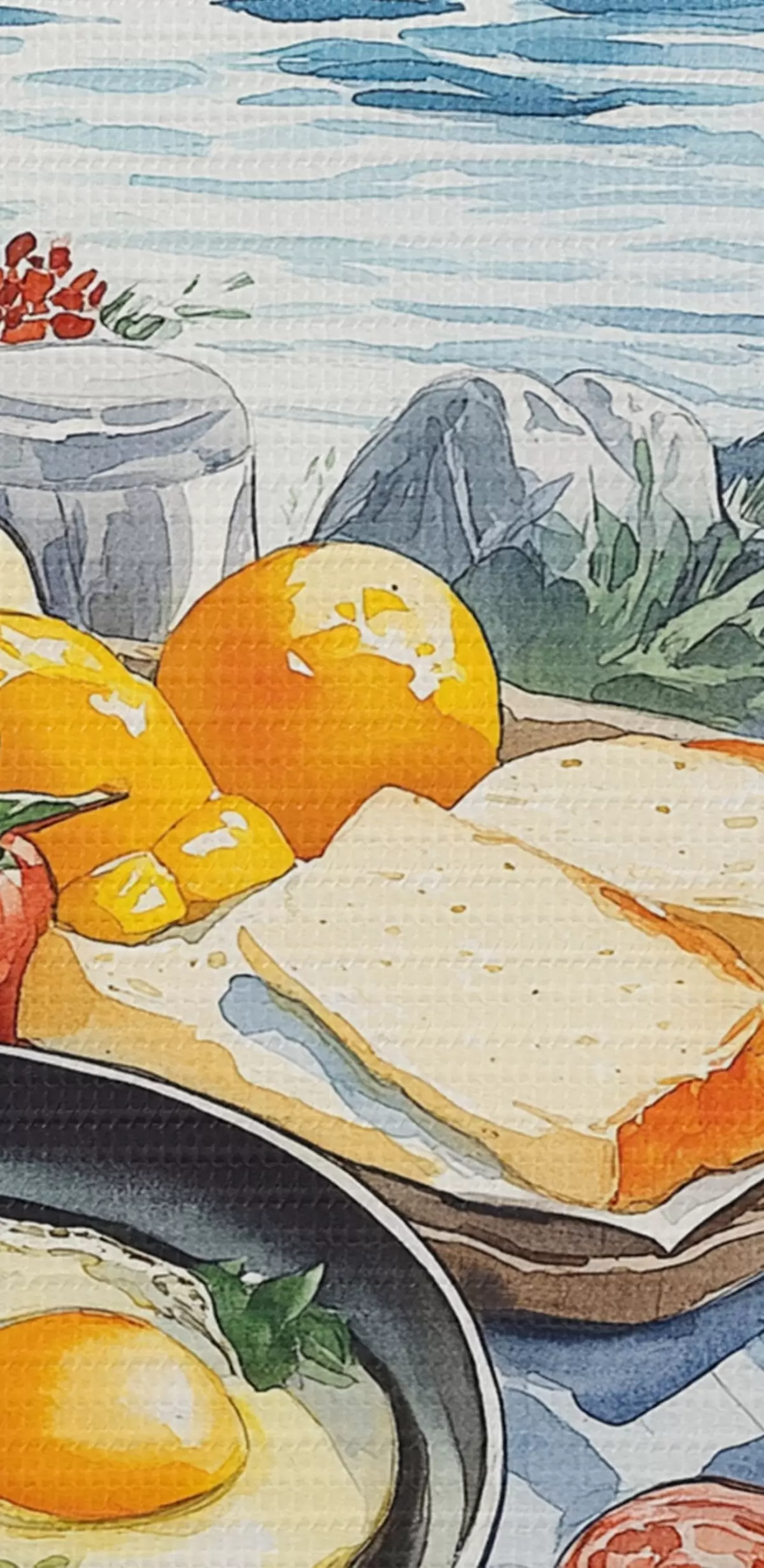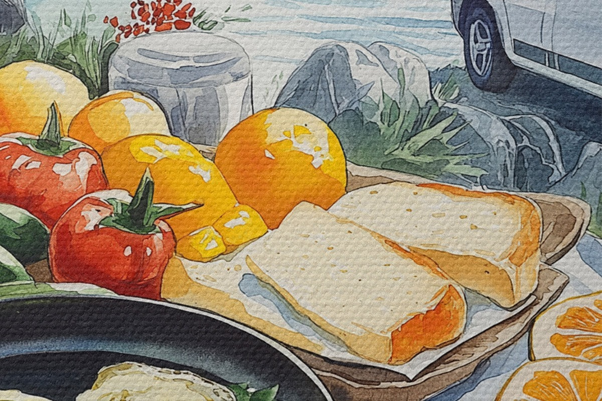 Afbeelding Reizen, buitenleven, aquarelstijl, Noorwegen, ontbijt Nr r42430
