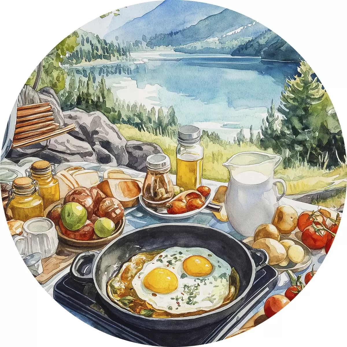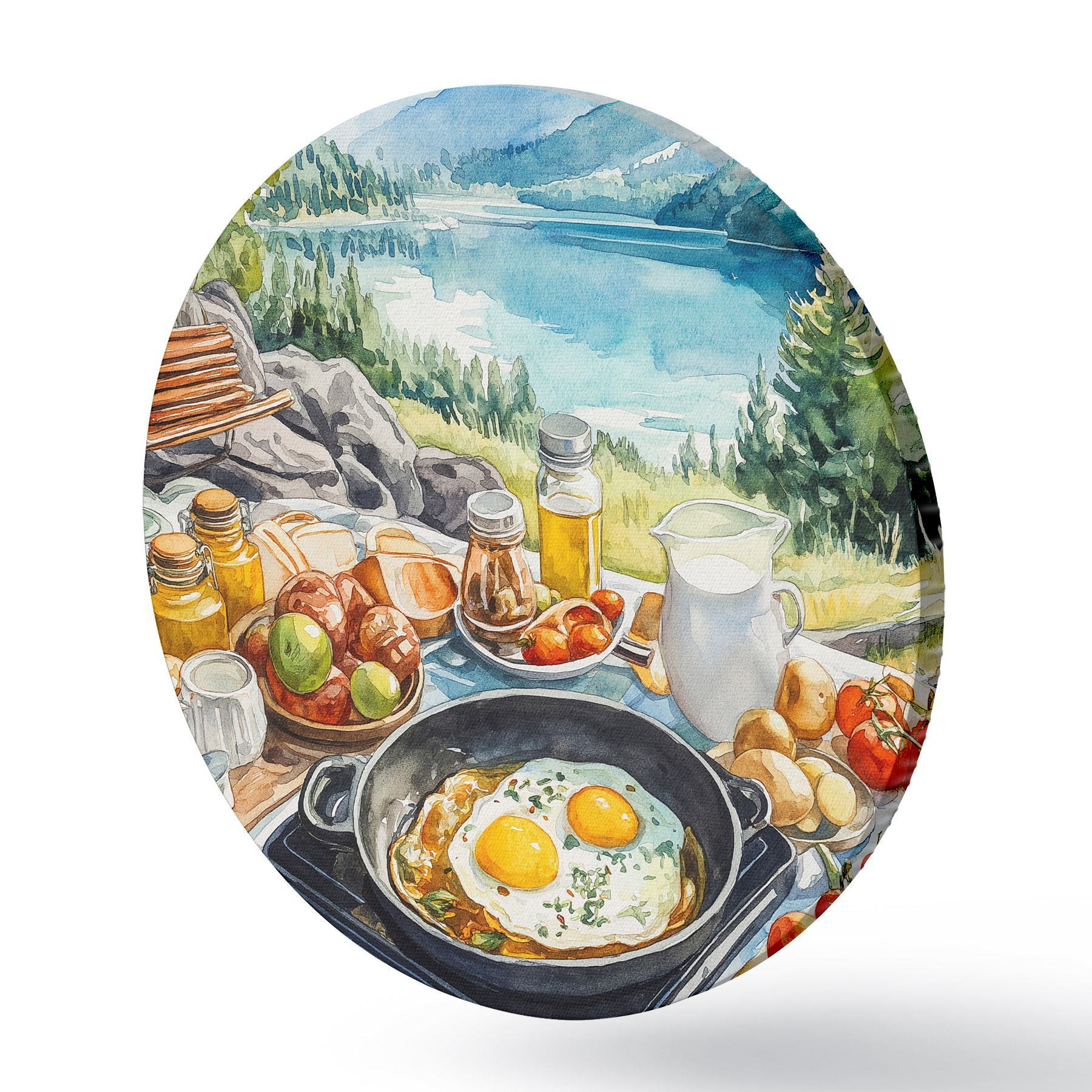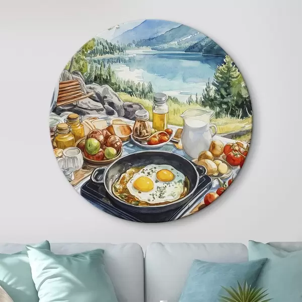 Ronde schilderijen Esthetisch ontbijt bij het meer, aquarelstijl r42432