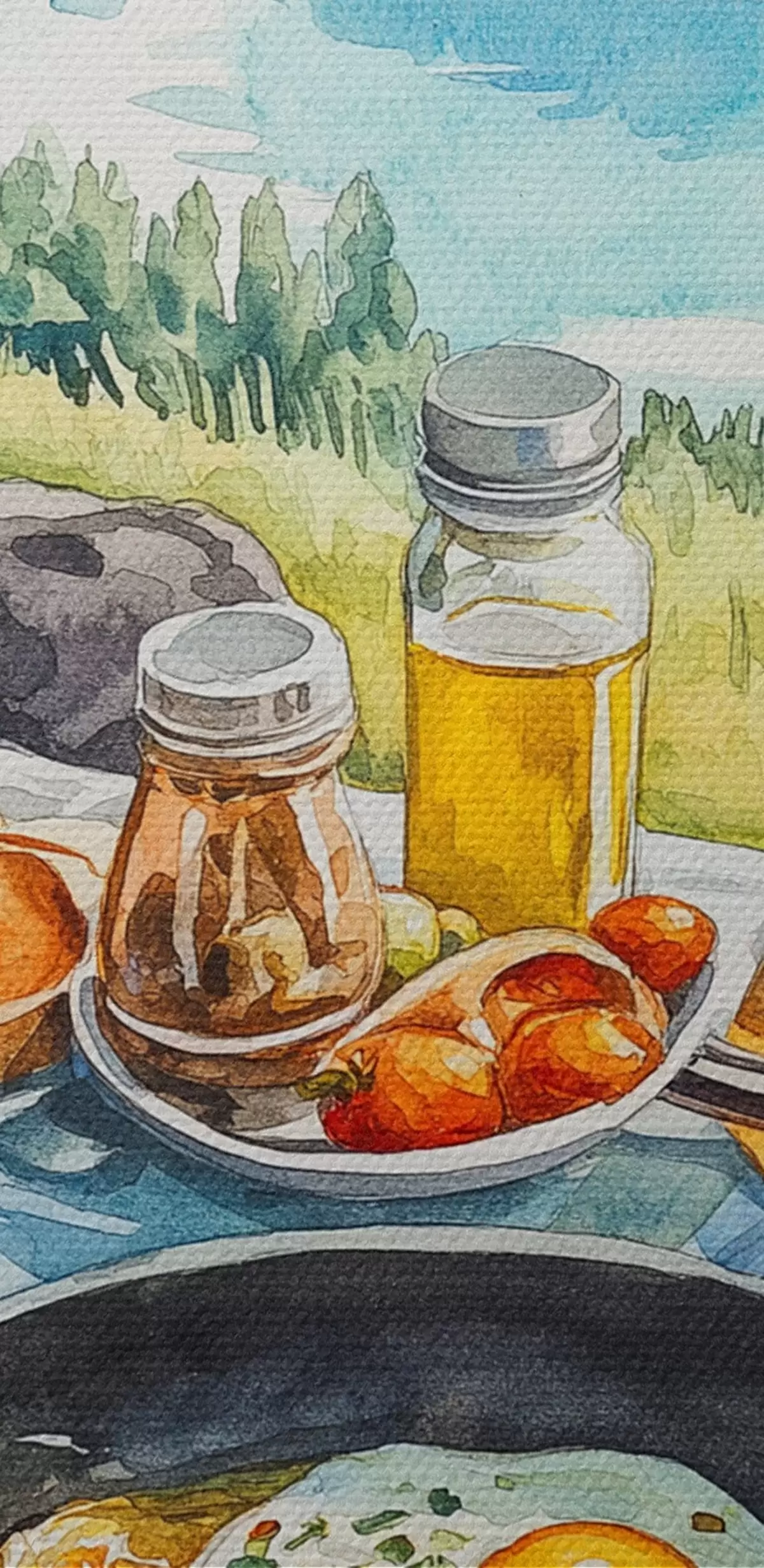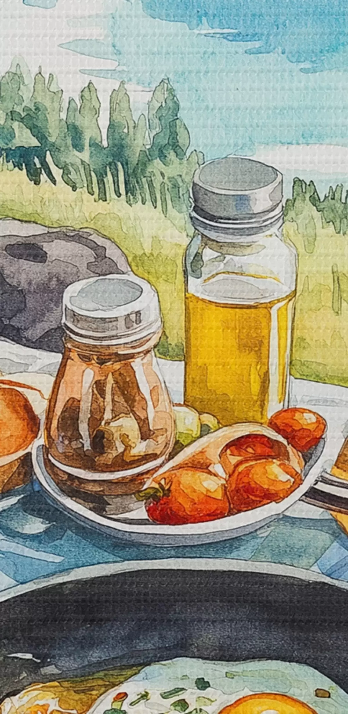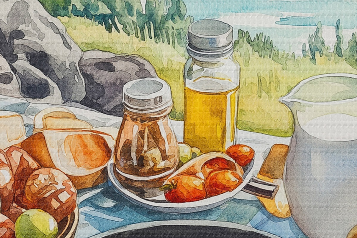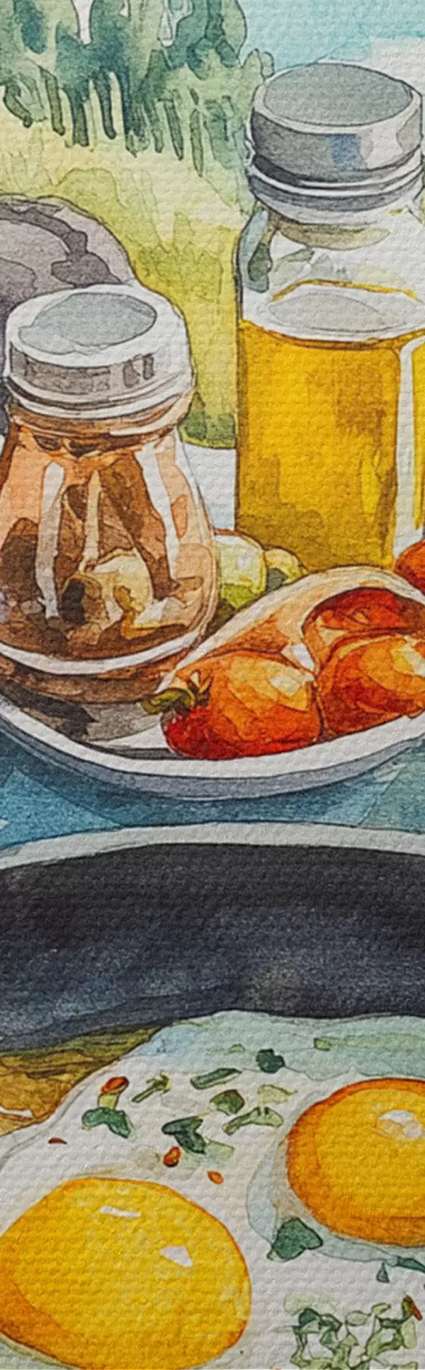 Afbeelding Esthetisch ontbijt bij het meer, aquarelstijl Nr r42432