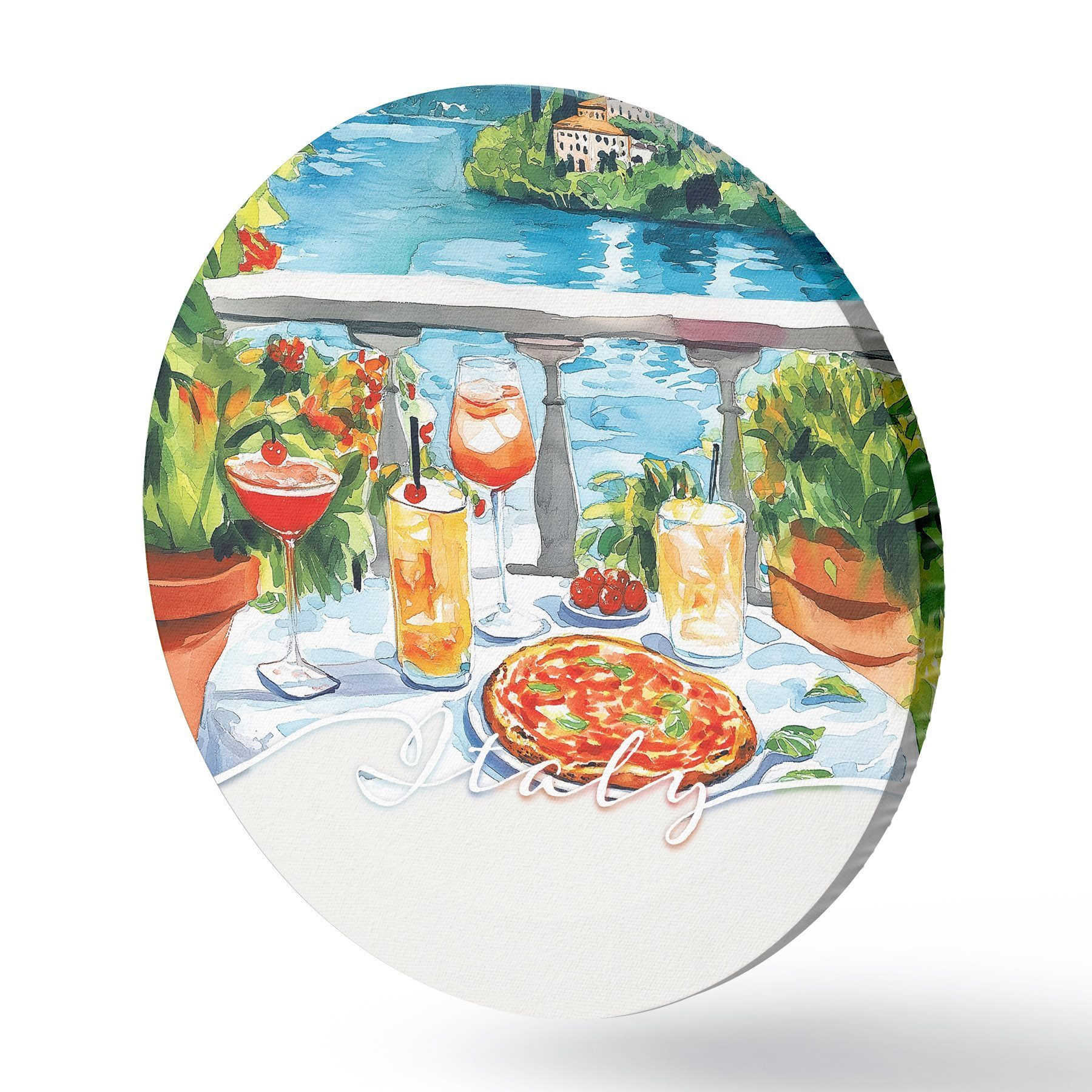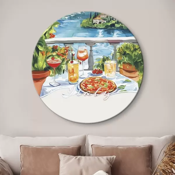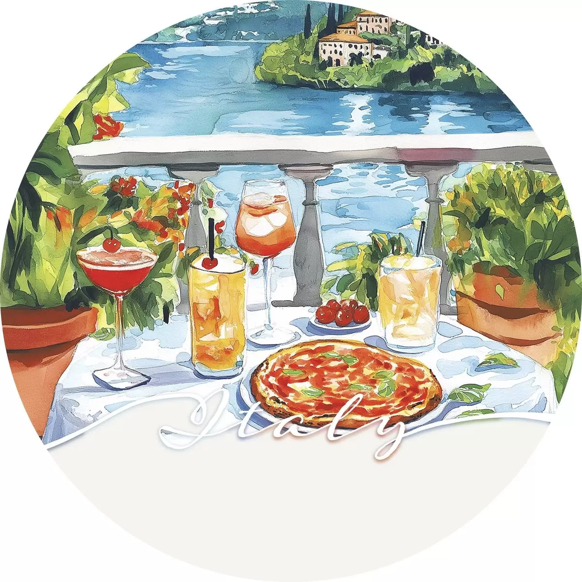 Ronde schilderijen Italië esthetiek, aquarel stijl, pizza en cocktails, bergen r42434