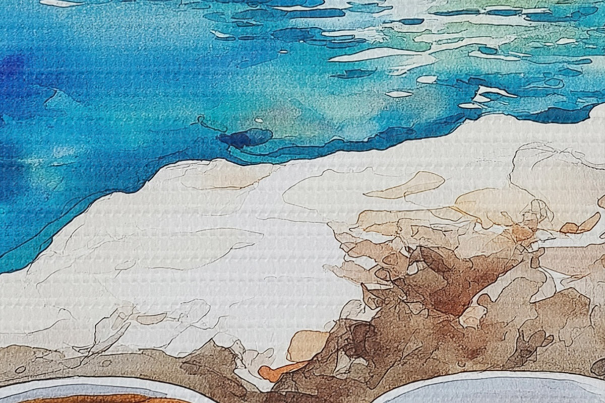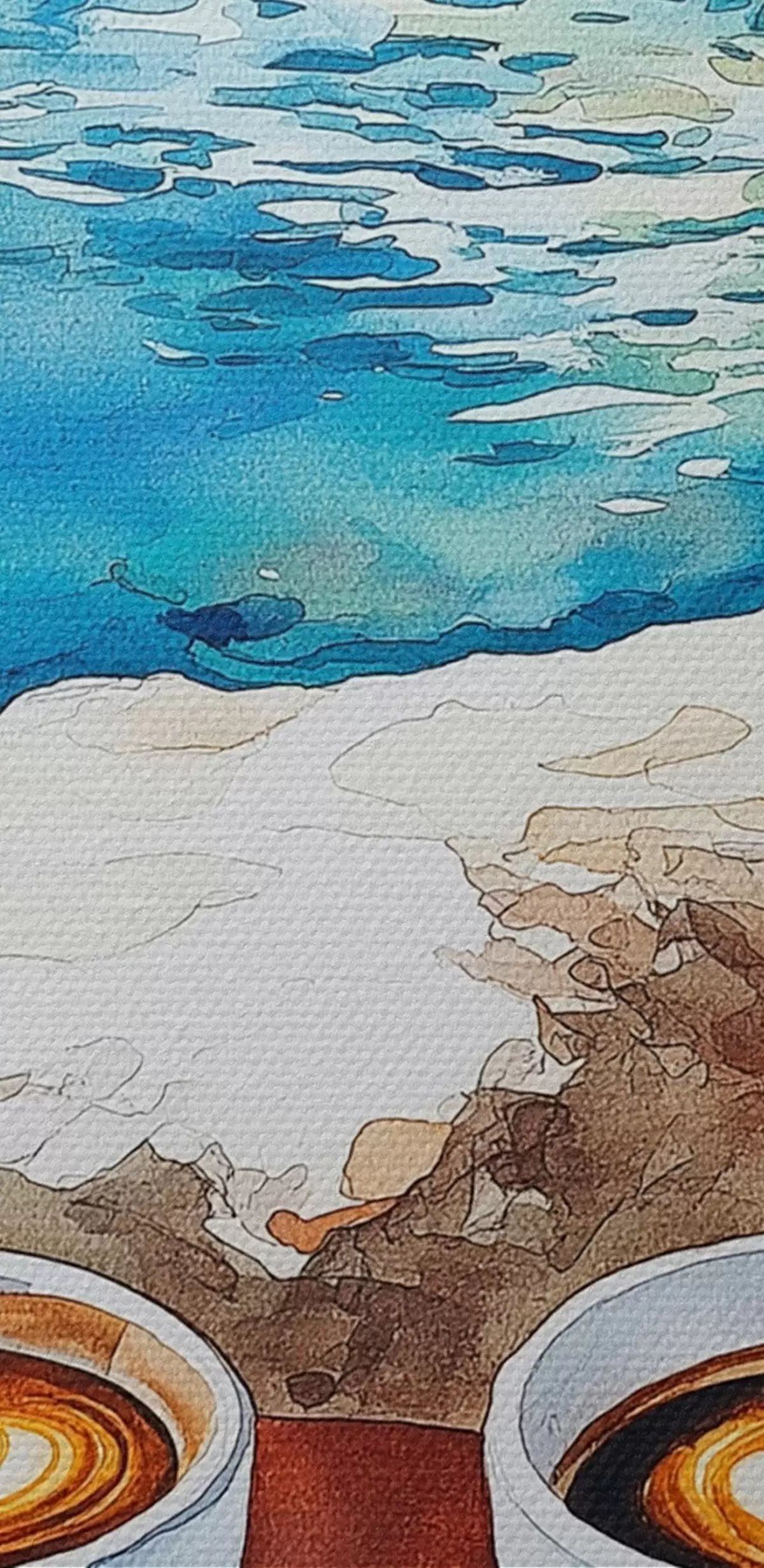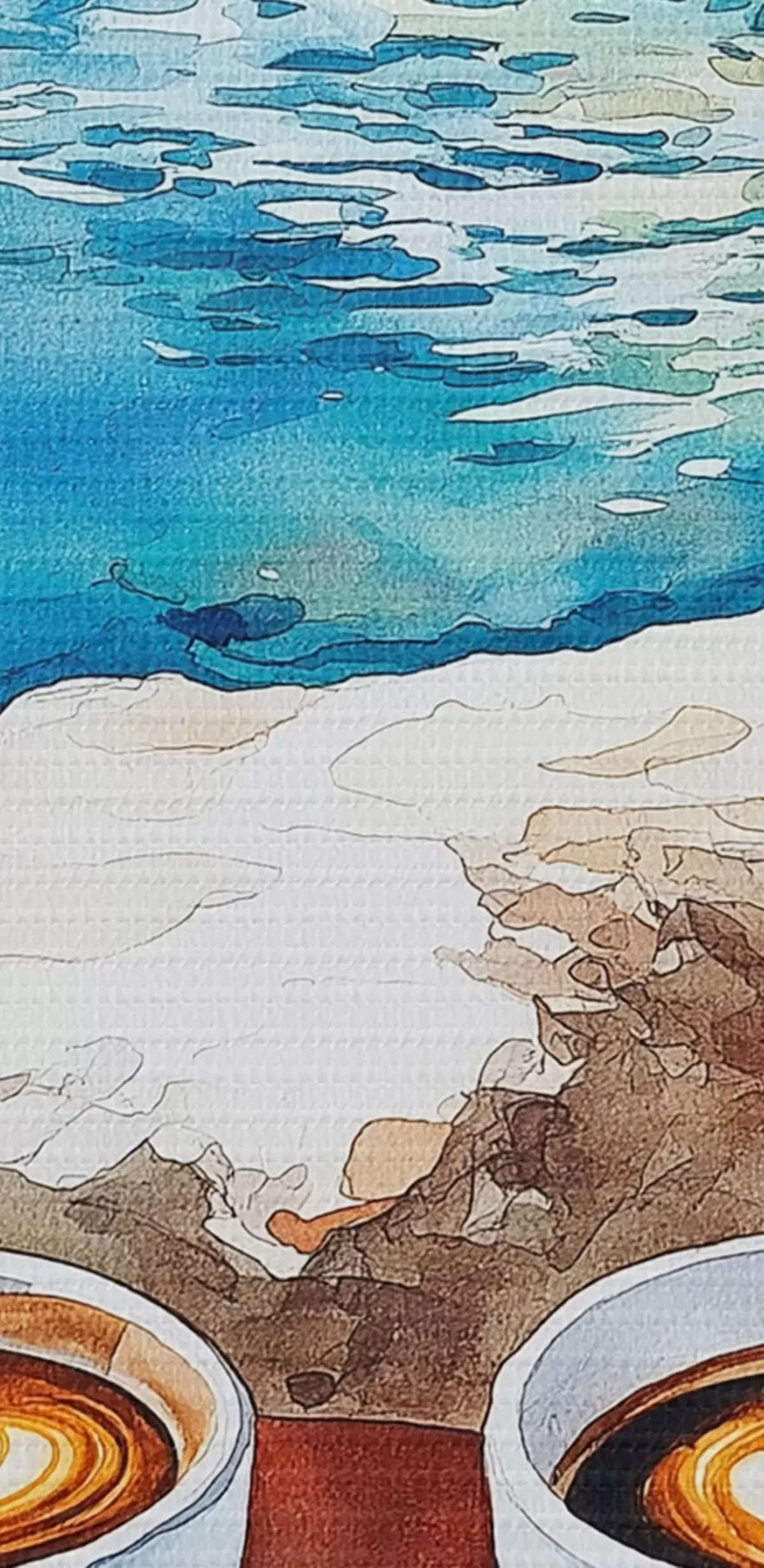 Afbeelding Aquarel zeezijde met kopjes koffie, zomer Nr r42449