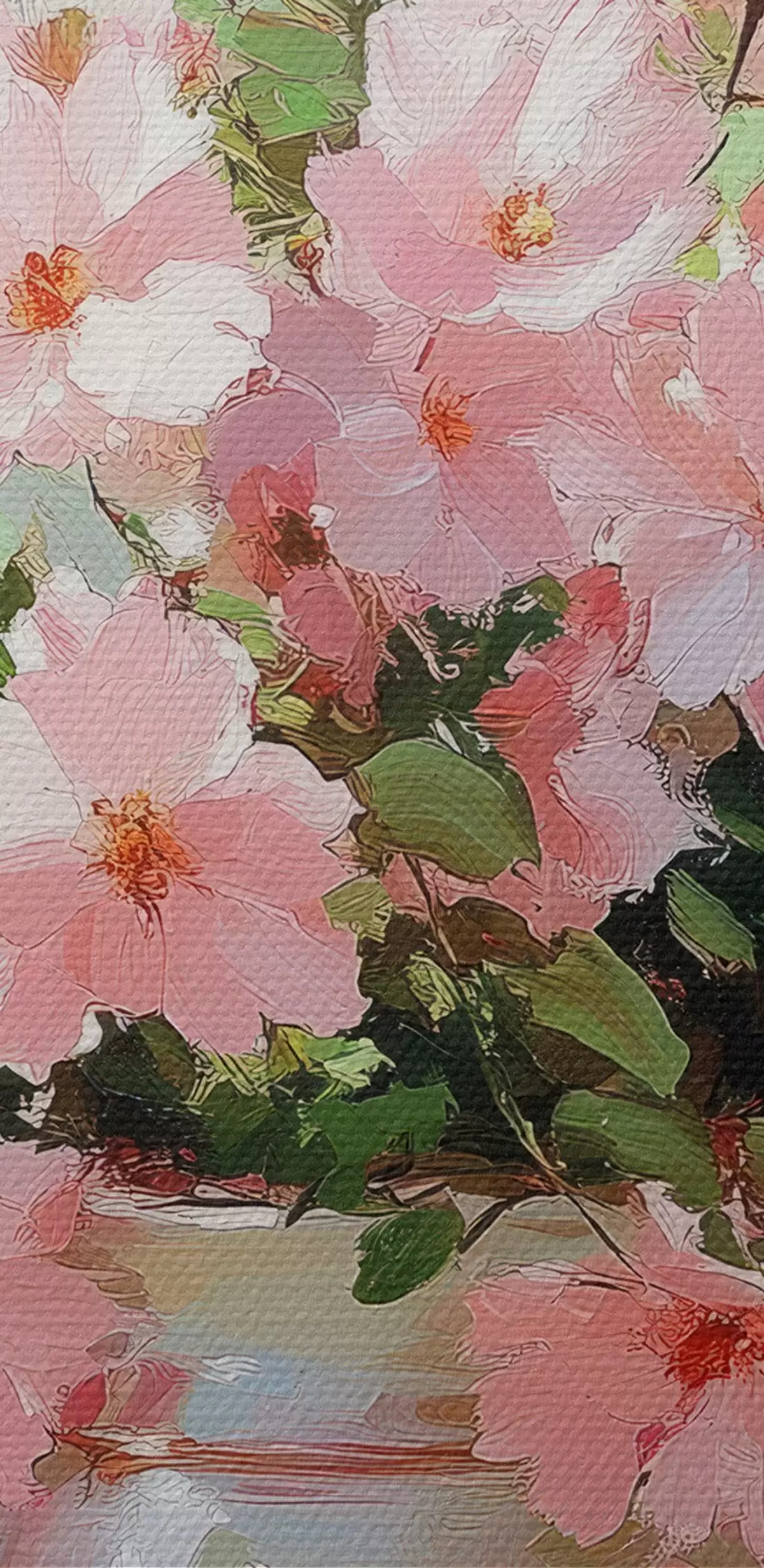 Het schilderij kan direct na ontvangst worden opgehangen. Het schilderij wordt opgespannen op een 2 cm breed houten spieraam.