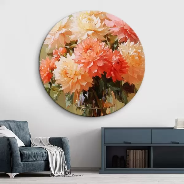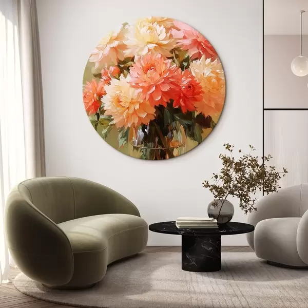 Ronde schilderijen Boeket weelderige bloemen in een vaas r42494